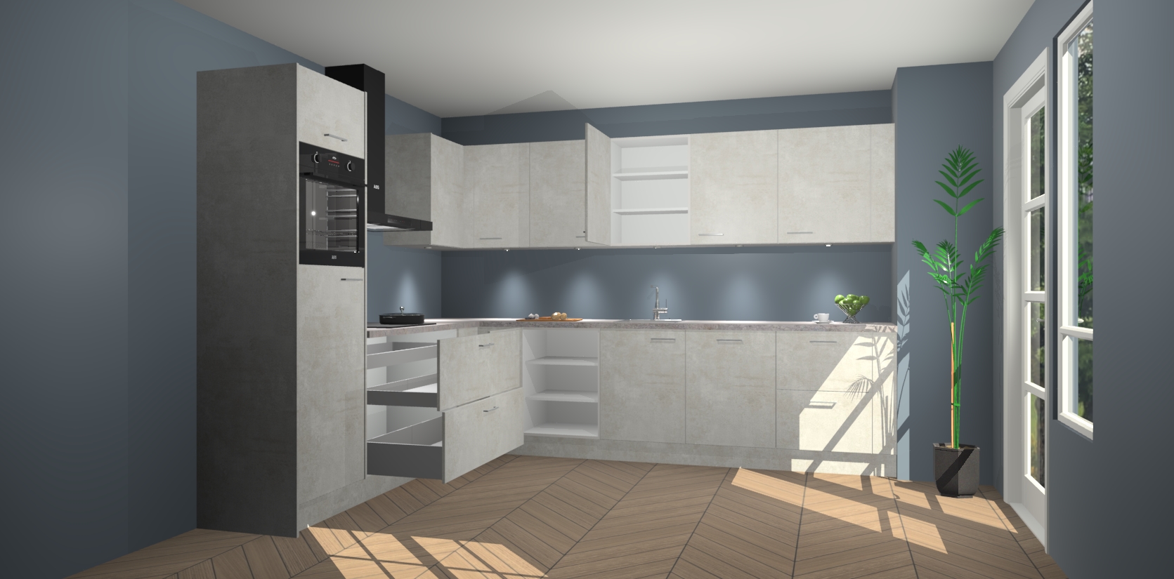 Als u op zoek bent naar de perfecte keuken om uw huis mee op te fleuren, zoek dan niet verder dan de Beton Opal keuken Debar. Deze prachtige hoekkeuken straalt warmte en luxe uit met een modern maar geraffineerd design. Maak u nooit meer zorgen of u wel genoeg opbergruimte heeft; dit meubel biedt voldoende opbergruimte om al uw keukenbenodigdheden binnen handbereik te houden.