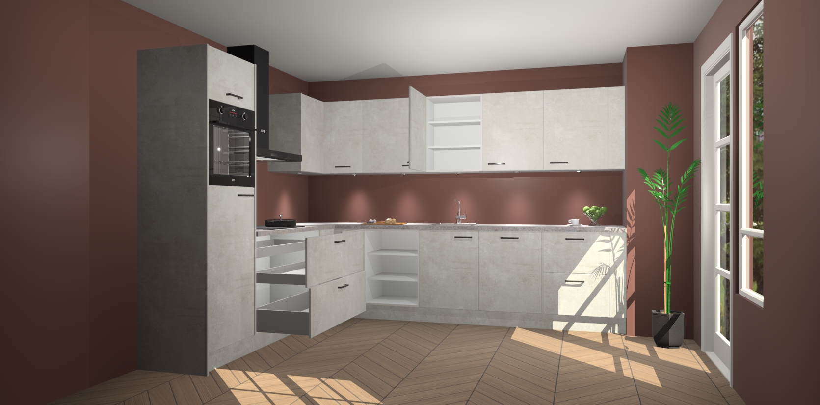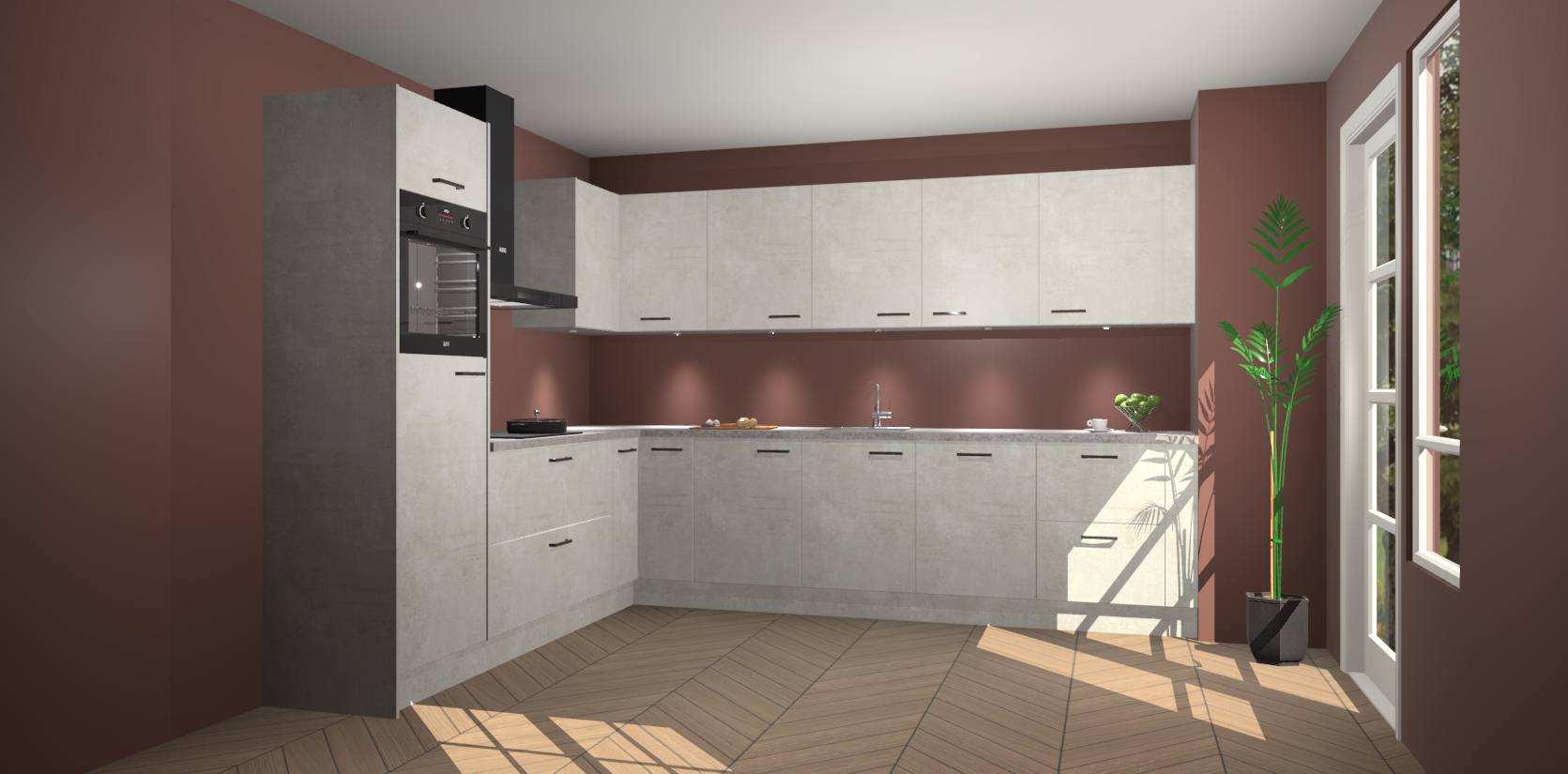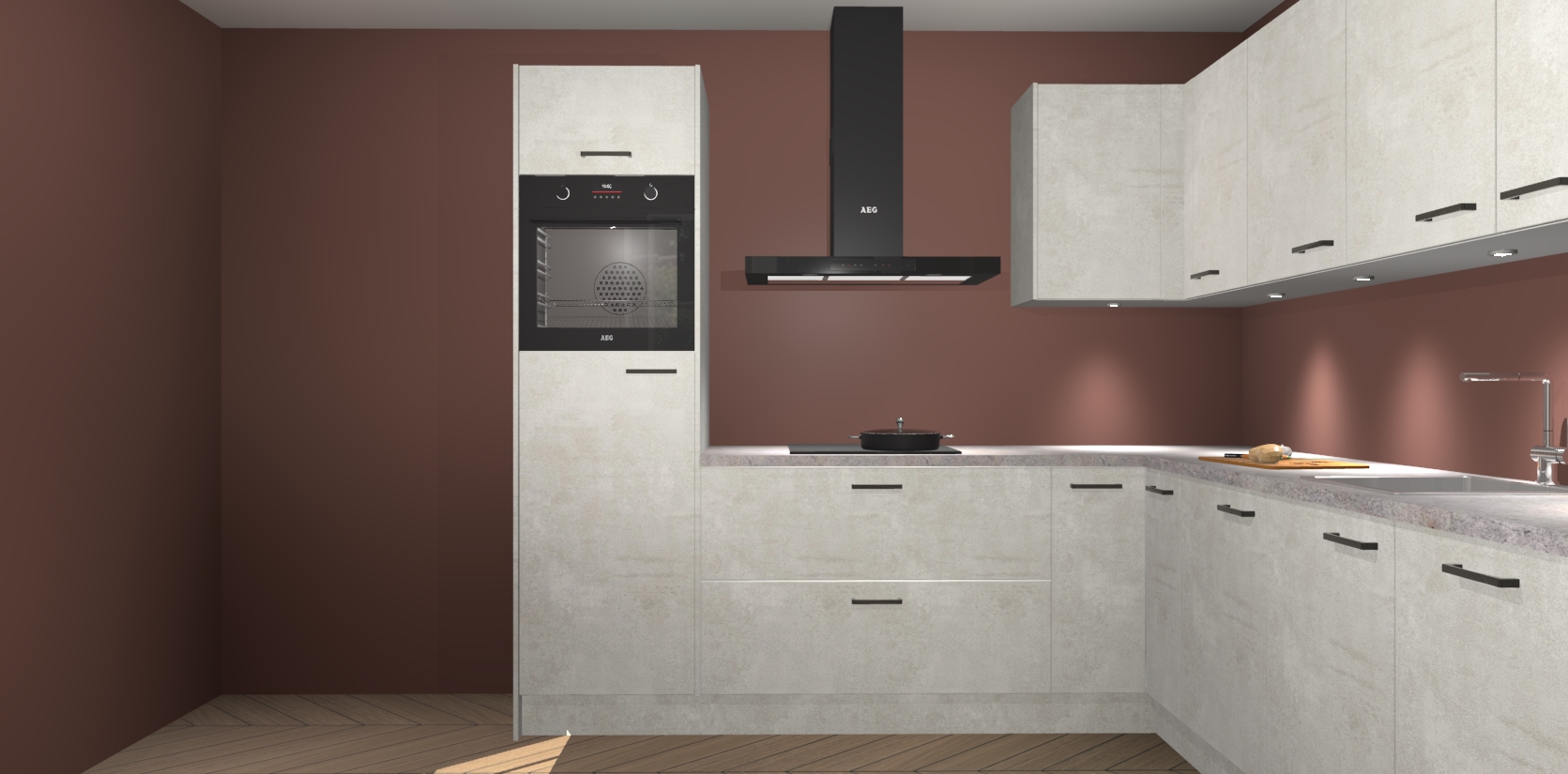 De Beton Opal keuken Debar is uitgerust met vijf inbouwapparaten die elke kooktaak handig en efficiënt maken. Een oven, inductiekookplaat, afzuigkap, vaatwasser en koelkast zijn standaard, maar kunnen na bestelling eenvoudig worden geupgrade naar AEG. Profiteer vervolgens van de softclose deuren voor snelle toegang en geruisloze toegang.