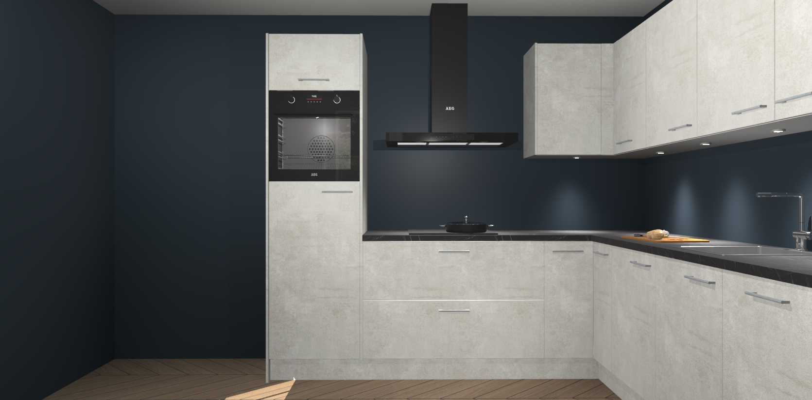De Beton Opal keuken Debar is uitgerust met vijf inbouwapparaten die elke kooktaak handig en efficiënt maken. Een oven, inductiekookplaat, afzuigkap, vaatwasser en koelkast zijn standaard, maar kunnen na bestelling eenvoudig worden geupgrade naar AEG. Profiteer vervolgens van de softclose deuren voor snelle toegang en geruisloze toegang.