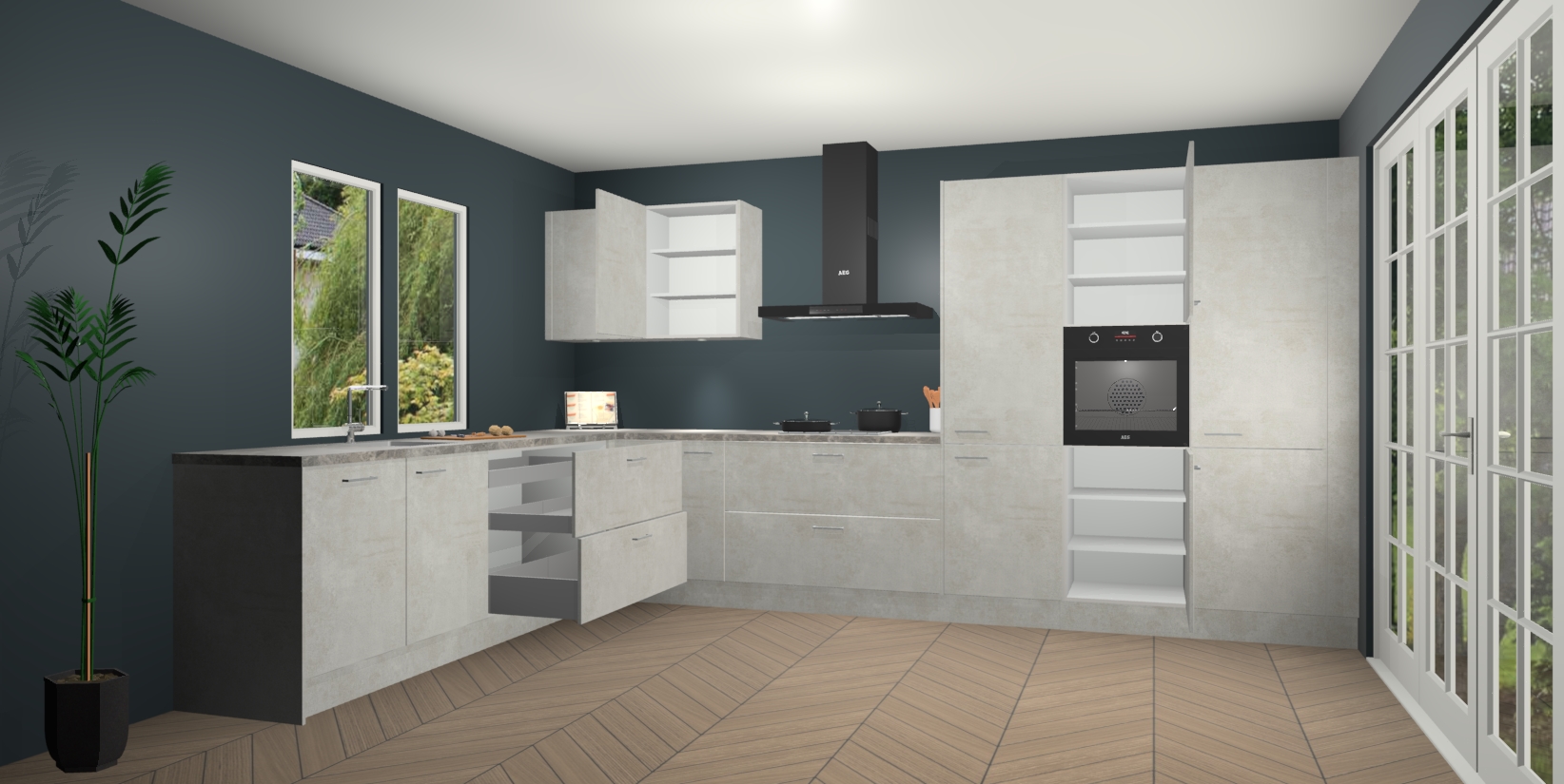 Heeft u nog apparatuur nodig? Geen probleem: de Beton Opal keuken Debrecen bevat vijf ingebouwde apparaten - een oven, inductiekookplaat, afzuigkap, vaatwasser en koelkast - die gemakkelijk kunnen worden bijgewerkt naar AEG na bestelling. En als dat nog niet genoeg is; onze kasten worden pre-geassembleerd geleverd en zijn verkrijgbaar tegen een vastgeroeste lage prijs! U hoeft nooit meer te zoeken naar goede kwaliteit en service want onze producten hebben echt Duitse kwaliteit.
