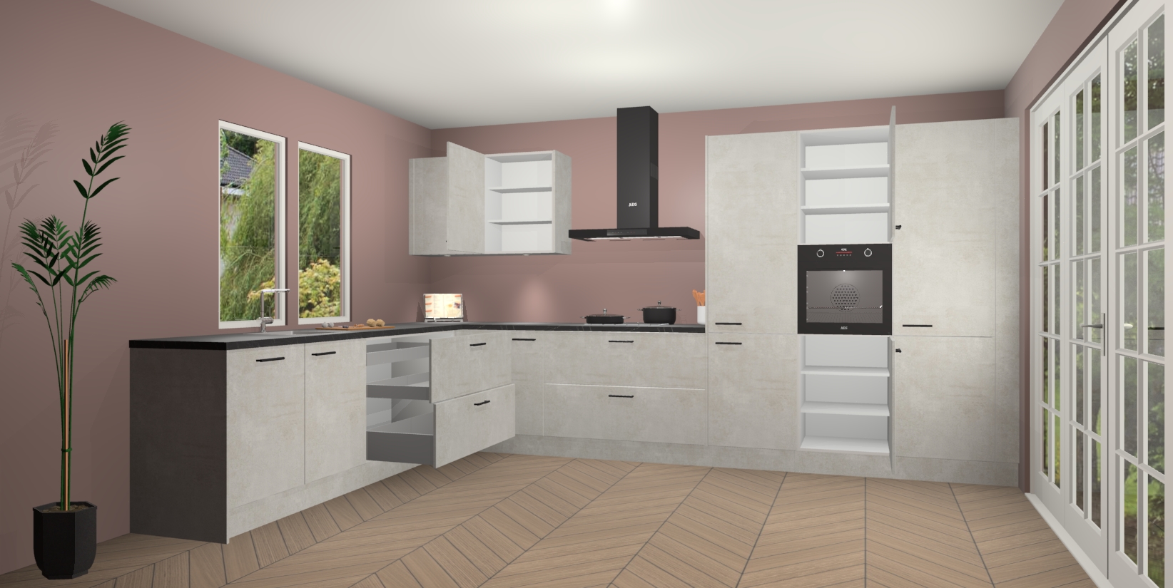 Inclusief plinten, stelpoten en werkblad