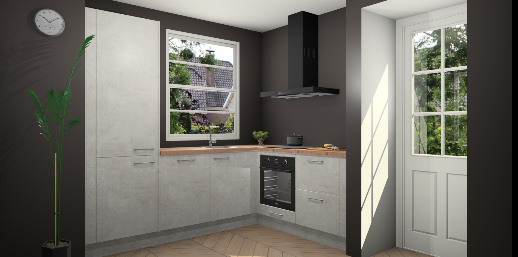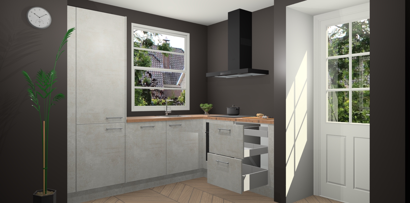 Wilt u een echte aanwinst voor uw keuken, maar bent u op zoek naar iets specialers dan de standaardkeukens? Kies dan voor de Beton Opal keuken Harbin! Dit prachtige hoekkeukenontwerp geeft u alle ruimte om optimaal te genieten van heerlijk koken. Het uitmuntende afwerkingsniveau, de fraaie houtstructuur en de sfeervolle zwarte grepen maken van de Beton Opal keuken Harbin de perfecte keuze voor zowel enthousiaste thuiskoks als design-minded interieurliefhebbers.