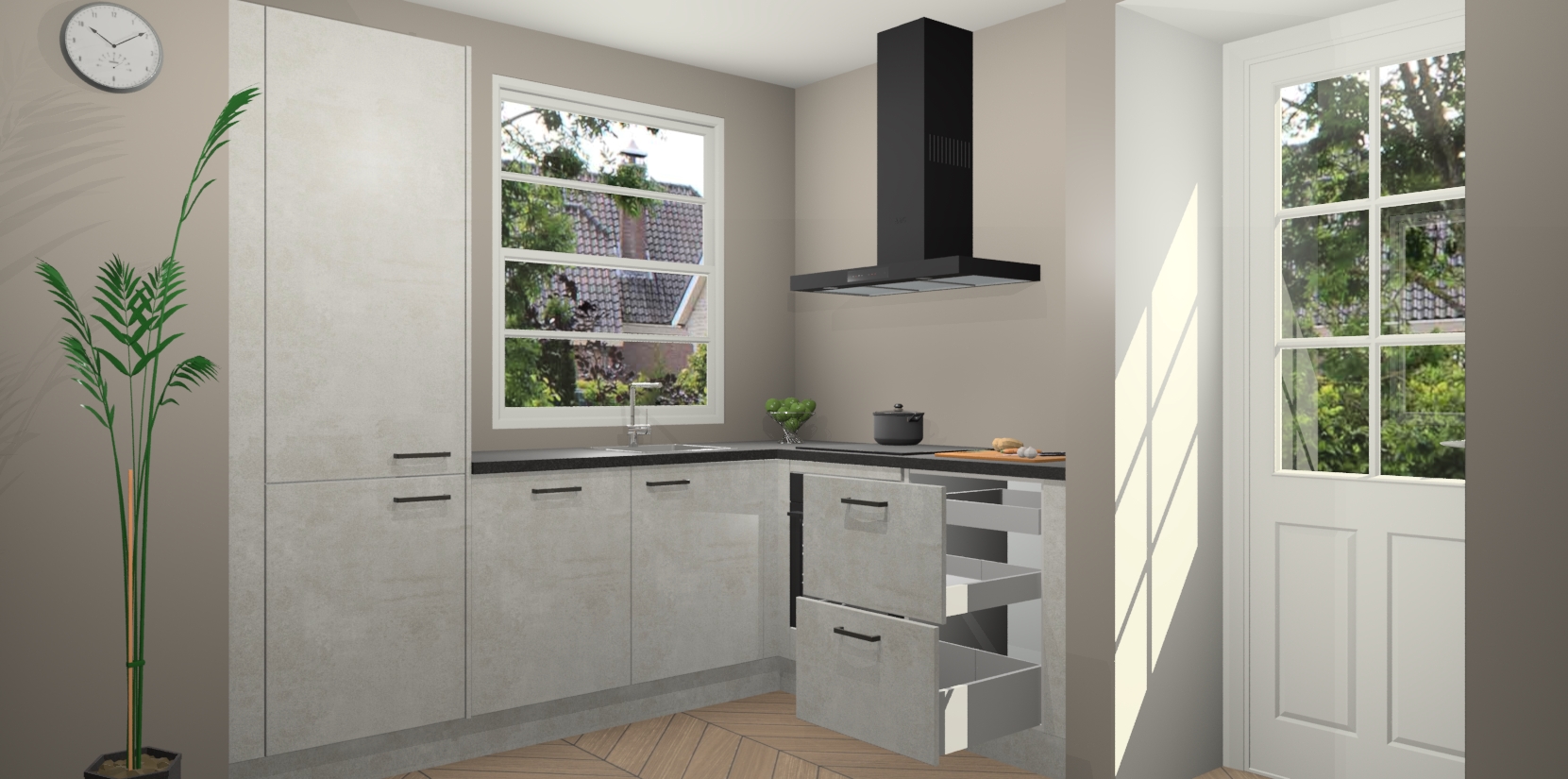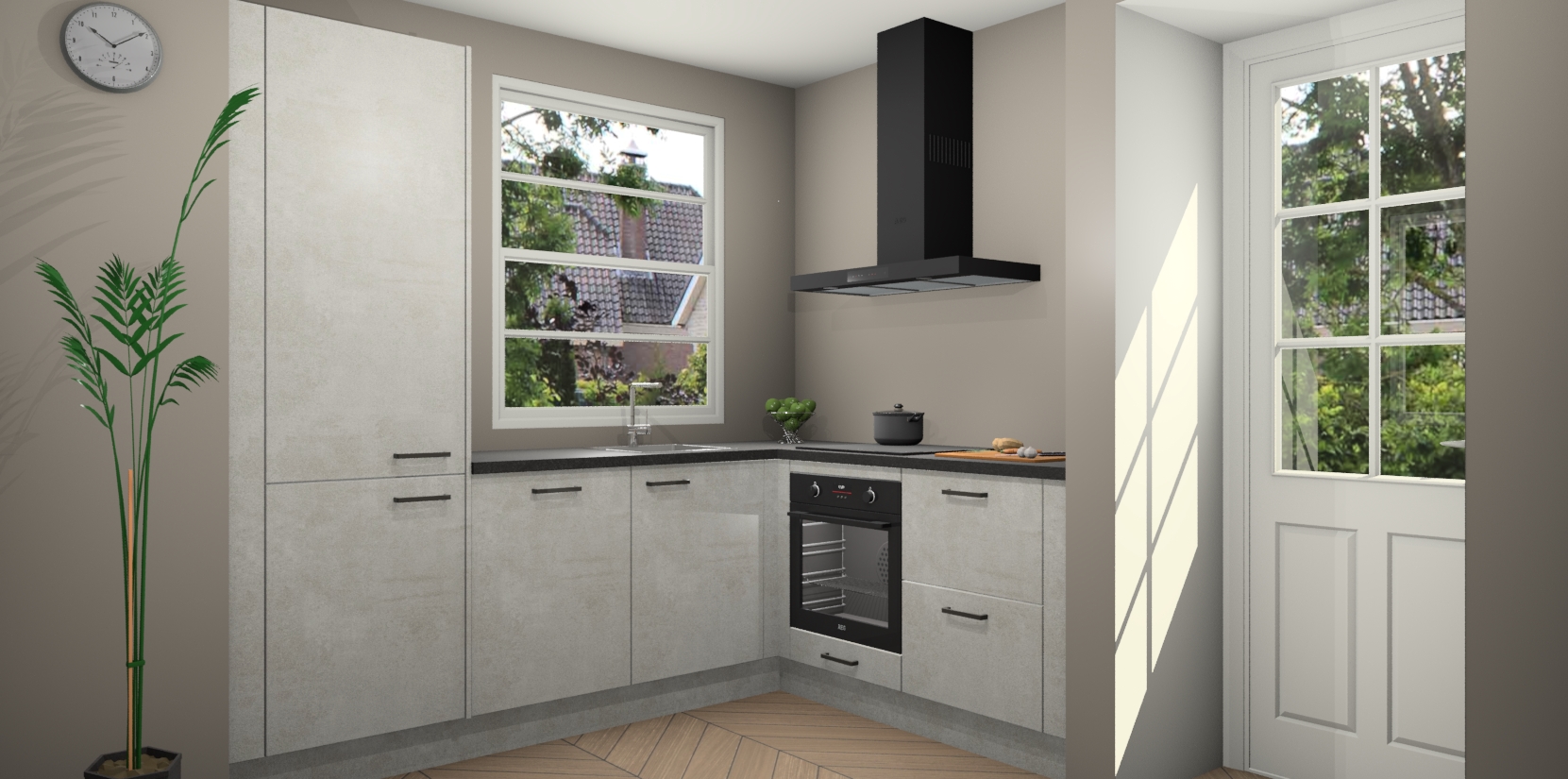 Wilt u een echte aanwinst voor uw keuken, maar bent u op zoek naar iets specialers dan de standaardkeukens? Kies dan voor de Beton Opal keuken Harbin! Dit prachtige hoekkeukenontwerp geeft u alle ruimte om optimaal te genieten van heerlijk koken. Het uitmuntende afwerkingsniveau, de fraaie houtstructuur en de sfeervolle zwarte grepen maken van de Beton Opal keuken Harbin de perfecte keuze voor zowel enthousiaste thuiskoks als design-minded interieurliefhebbers.