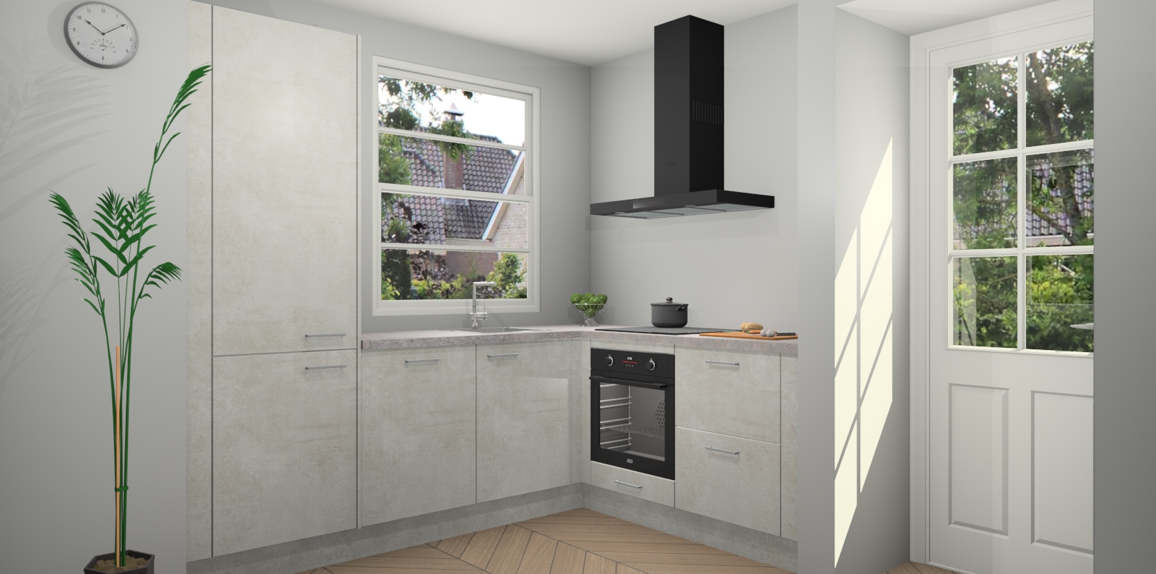 Plus: de Beton Opal keuken Harbin is kant en klaar voorzien van 5 inbouwapparaten. U krijgt er direct bij: een oven, inductiekookplaat, afzuigkap, vaatwasser én koelkast. En als dat nog niet luxueus genoeg is, heeft u nog de mogelijkheid om de apparaten te upgraden naar AEG of om uw oven te vervangen door een combimagnetron. Ook fijn van voordeel zijn de softclosing-deuren die ervoor zorgen dat u geen geluid hoeft te maken wanneer u weer uw koelkastdeurtjes dichtdoet!