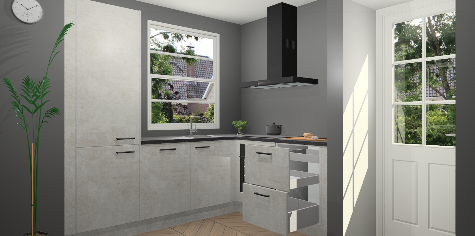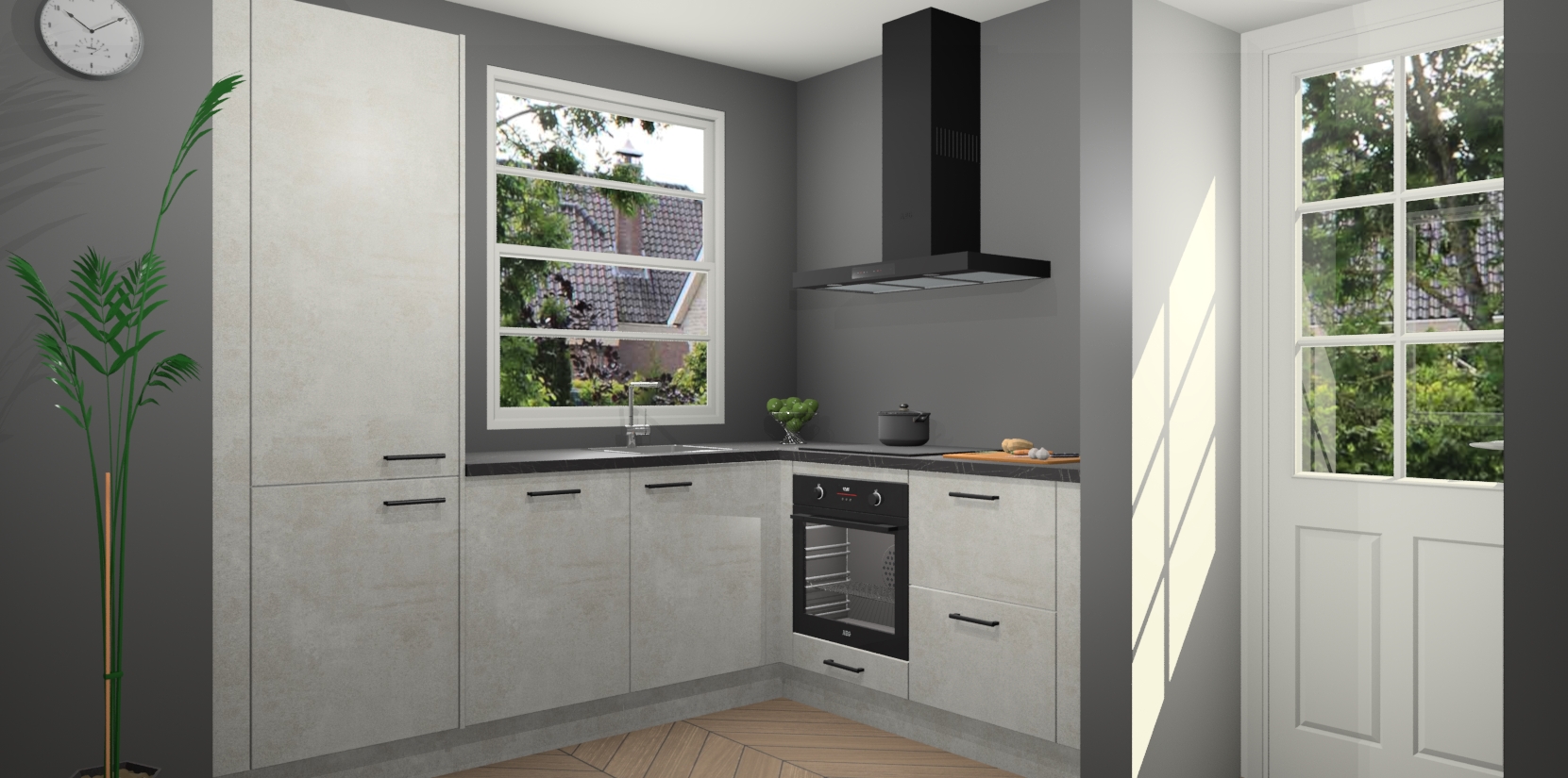 Wilt u een echte aanwinst voor uw keuken, maar bent u op zoek naar iets specialers dan de standaardkeukens? Kies dan voor de Beton Opal keuken Harbin! Dit prachtige hoekkeukenontwerp geeft u alle ruimte om optimaal te genieten van heerlijk koken. Het uitmuntende afwerkingsniveau, de fraaie houtstructuur en de sfeervolle zwarte grepen maken van de Beton Opal keuken Harbin de perfecte keuze voor zowel enthousiaste thuiskoks als design-minded interieurliefhebbers.