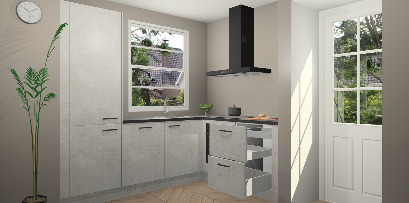 Wilt u een echte aanwinst voor uw keuken, maar bent u op zoek naar iets specialers dan de standaardkeukens? Kies dan voor de Beton Opal keuken Harbin! Dit prachtige hoekkeukenontwerp geeft u alle ruimte om optimaal te genieten van heerlijk koken. Het uitmuntende afwerkingsniveau, de fraaie houtstructuur en de sfeervolle zwarte grepen maken van de Beton Opal keuken Harbin de perfecte keuze voor zowel enthousiaste thuiskoks als design-minded interieurliefhebbers.