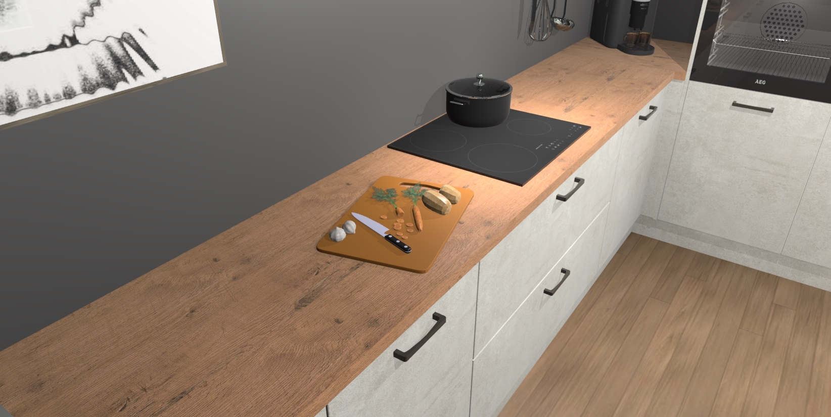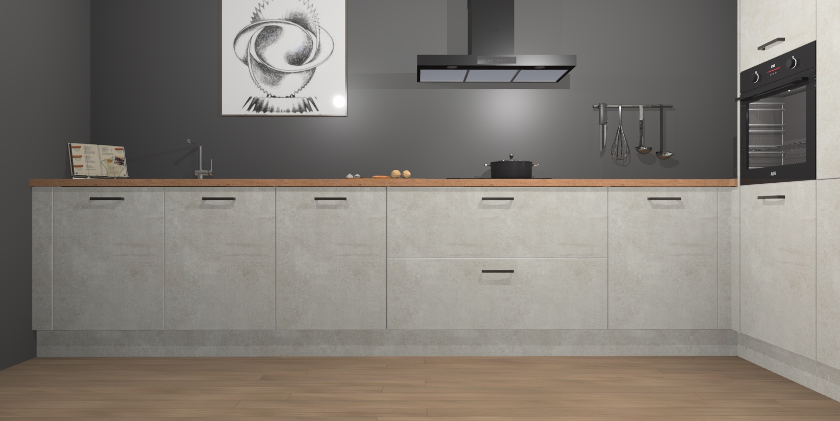 Welkom bij de Beton Opal keuken Khao Lak. Deze prachtige keuken zal de komende jaren het middelpunt van de belangstelling in uw huis zijn. Uitgerust met vijf inbouwapparaten komt u nooit kookgereedschap tekort. Bovendien geeft de warme houtlook elke ruimte een uitnodigende en tijdloze uitstraling.