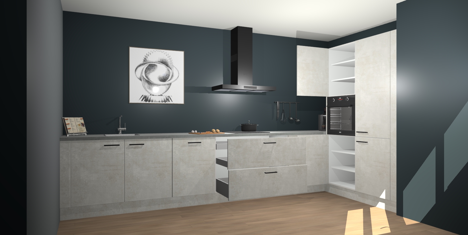 Welkom bij de Beton Opal keuken Khao Lak. Deze prachtige keuken zal de komende jaren het middelpunt van de belangstelling in uw huis zijn. Uitgerust met vijf inbouwapparaten komt u nooit kookgereedschap tekort. Bovendien geeft de warme houtlook elke ruimte een uitnodigende en tijdloze uitstraling.