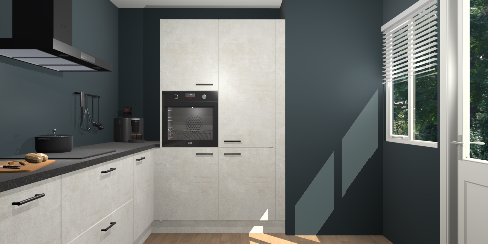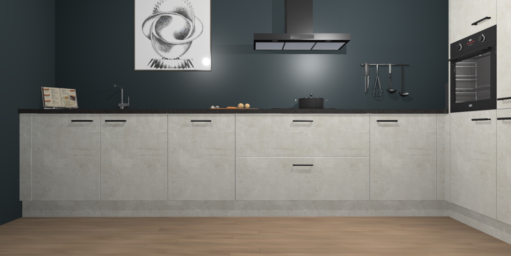 Welkom bij de Beton Opal keuken Khao Lak. Deze prachtige keuken zal de komende jaren het middelpunt van de belangstelling in uw huis zijn. Uitgerust met vijf inbouwapparaten komt u nooit kookgereedschap tekort. Bovendien geeft de warme houtlook elke ruimte een uitnodigende en tijdloze uitstraling.