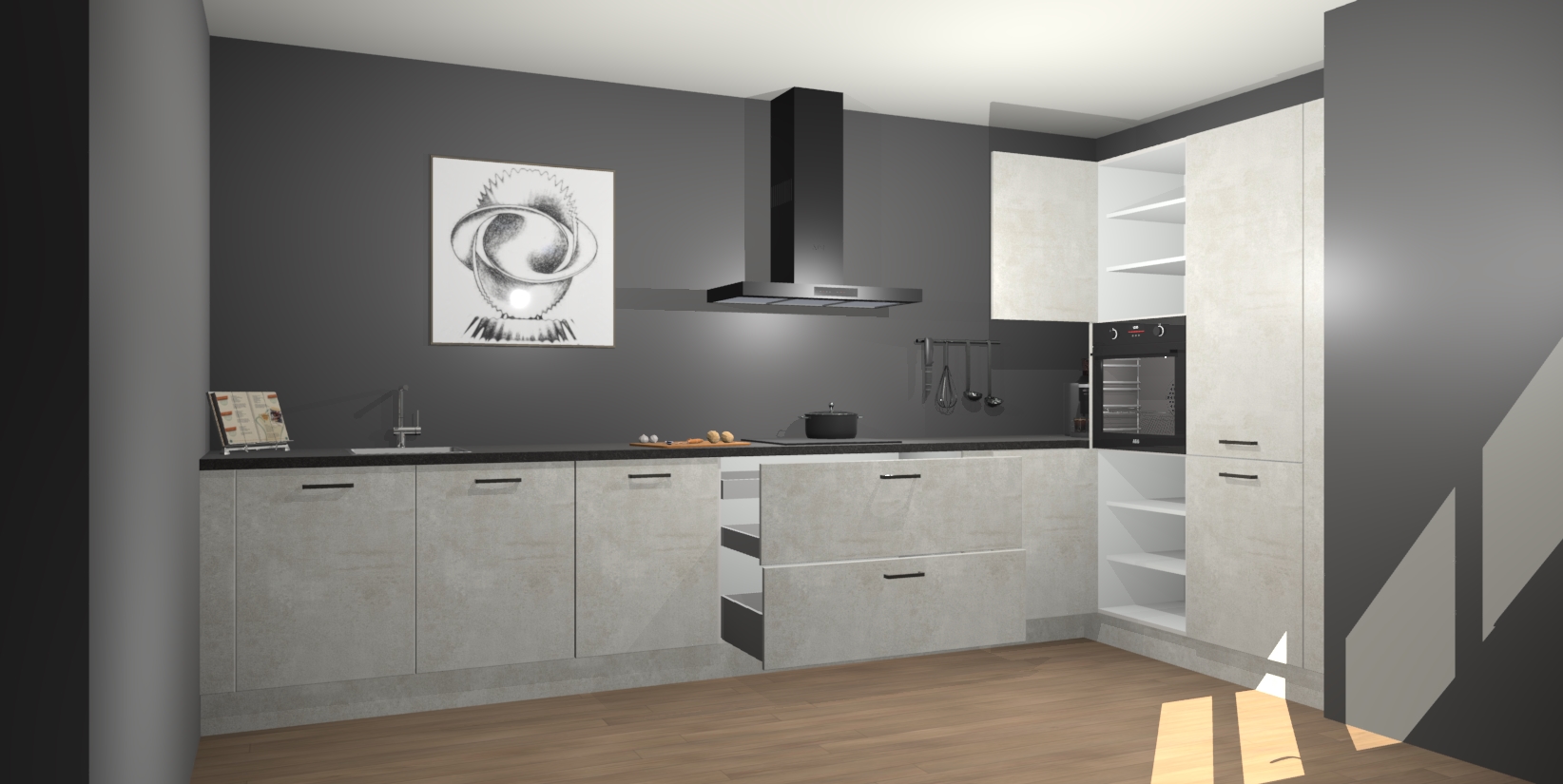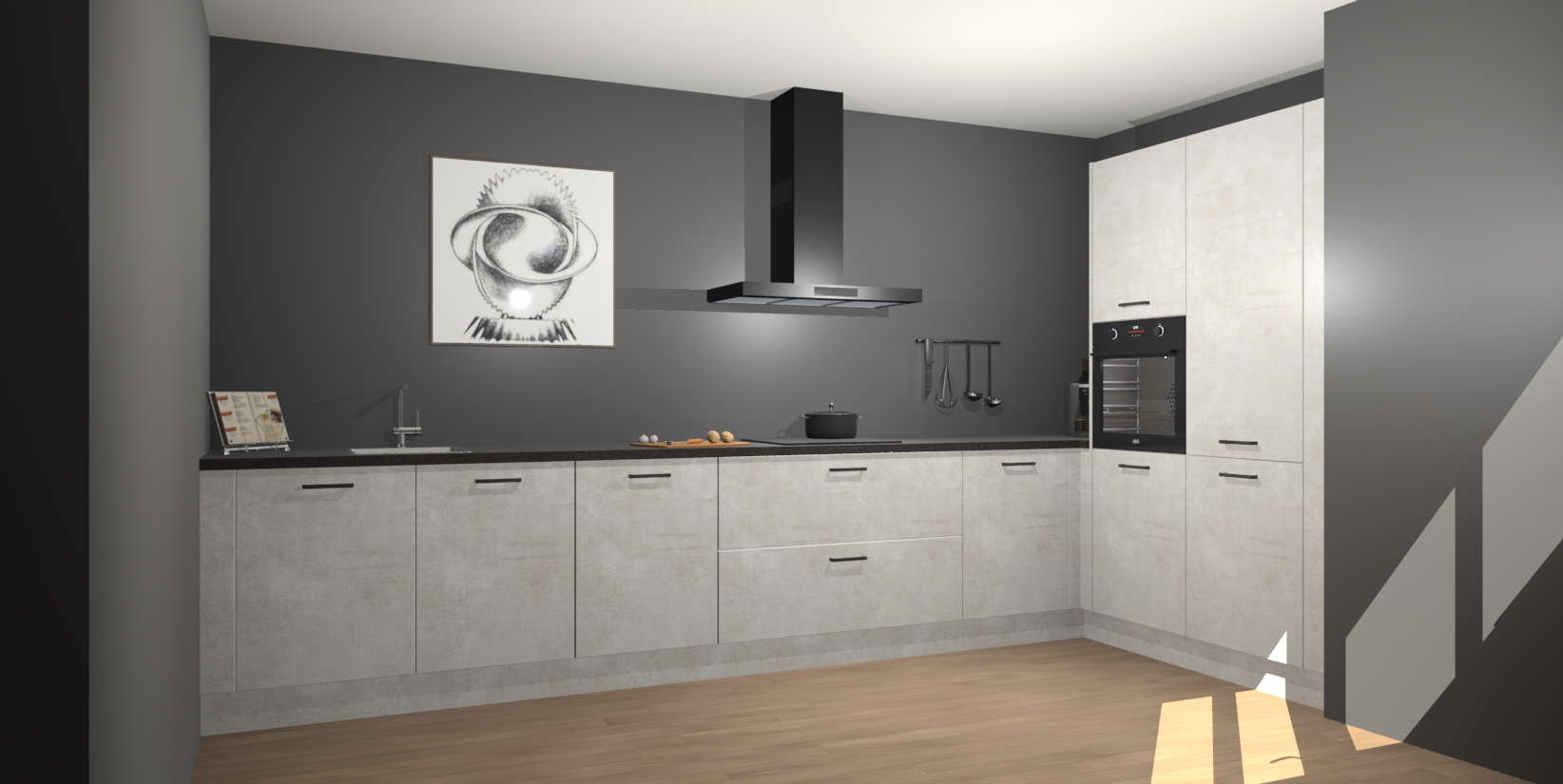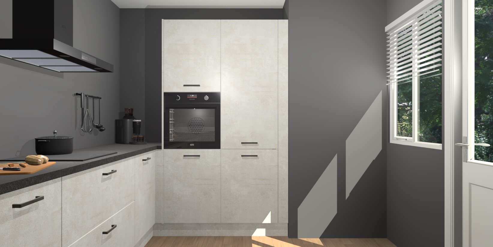 Welkom bij de Beton Opal keuken Khao Lak. Deze prachtige keuken zal de komende jaren het middelpunt van de belangstelling in uw huis zijn. Uitgerust met vijf inbouwapparaten komt u nooit kookgereedschap tekort. Bovendien geeft de warme houtlook elke ruimte een uitnodigende en tijdloze uitstraling.
