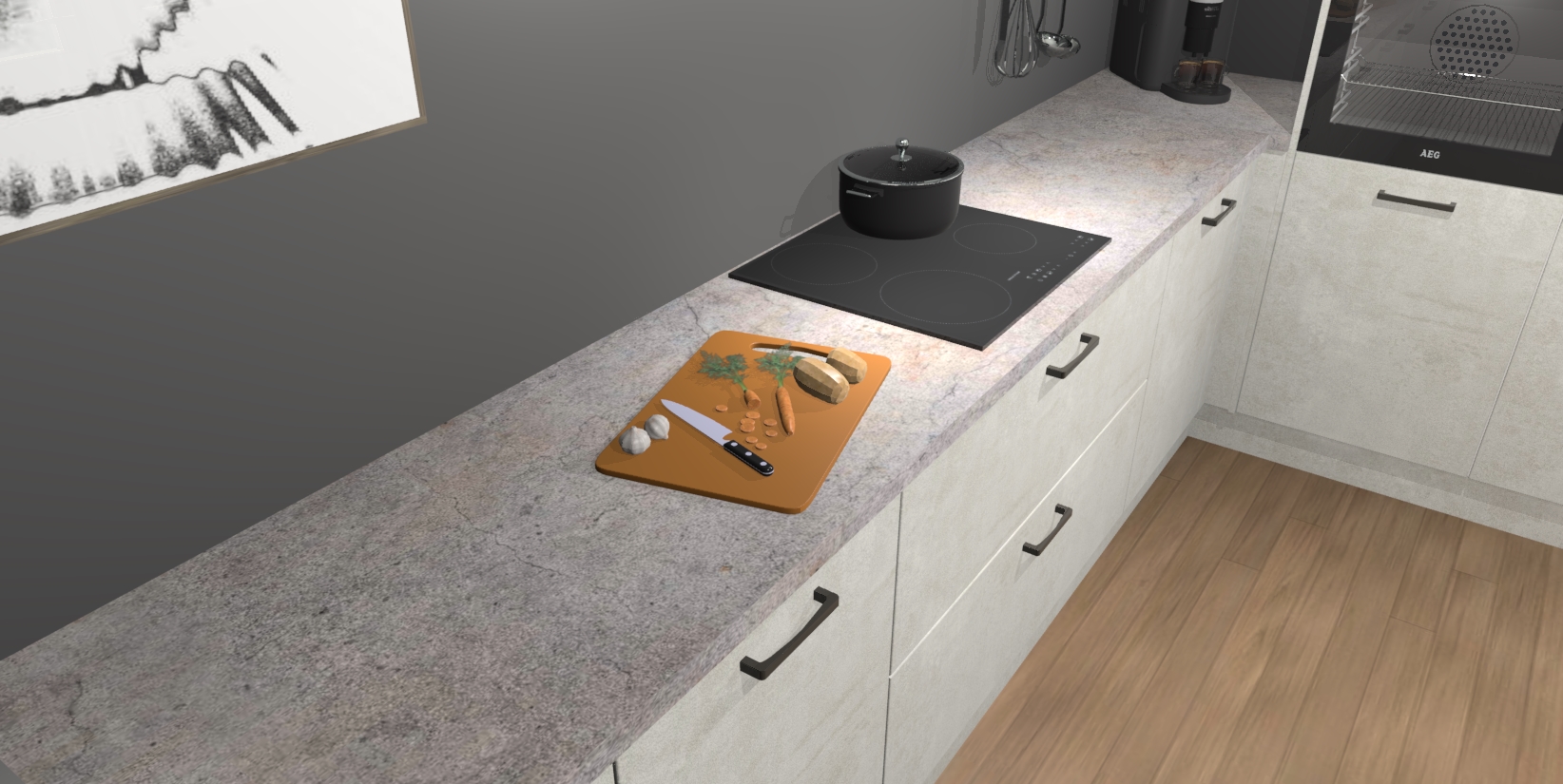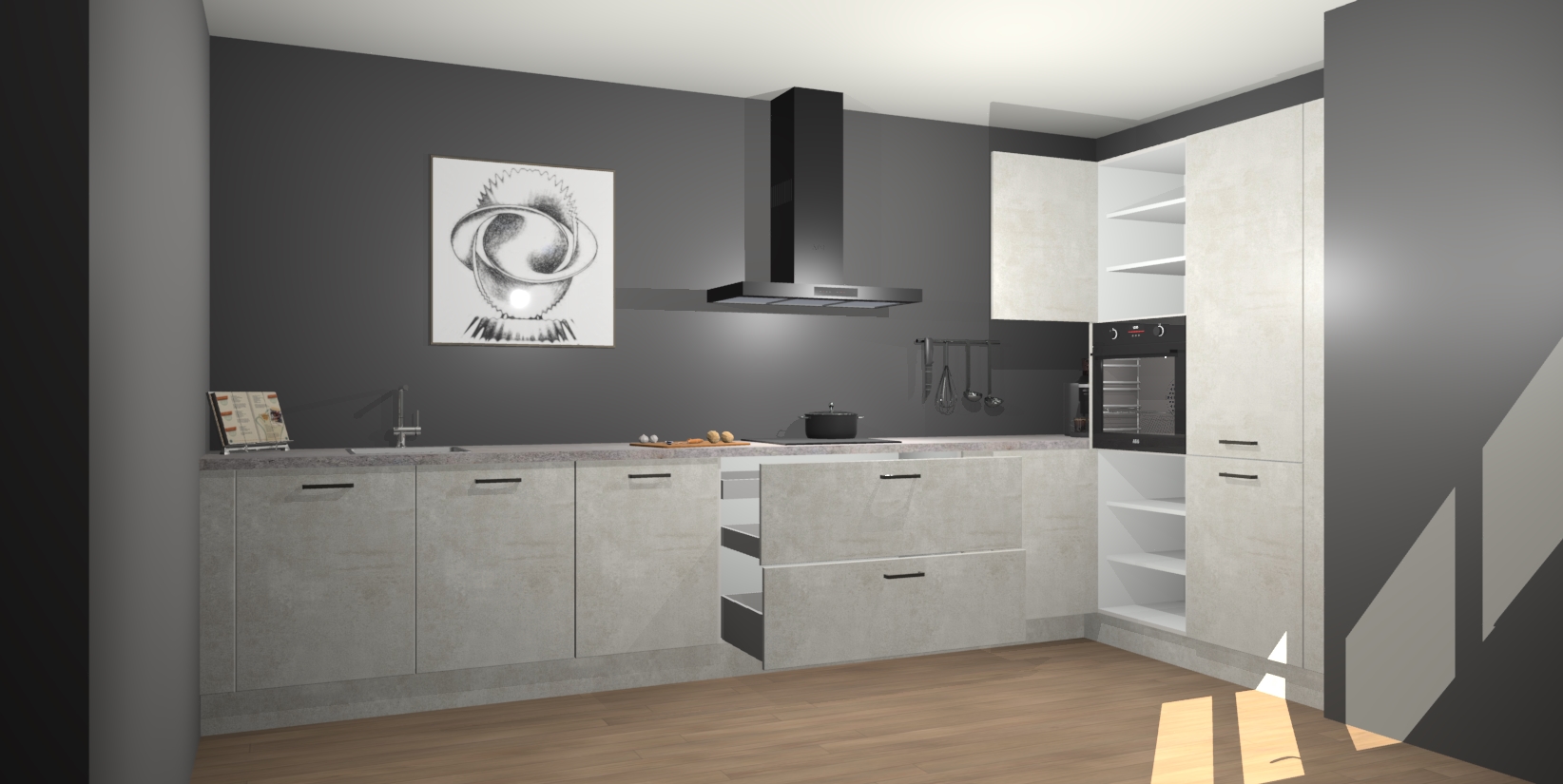 Welkom bij de Beton Opal keuken Khao Lak. Deze prachtige keuken zal de komende jaren het middelpunt van de belangstelling in uw huis zijn. Uitgerust met vijf inbouwapparaten komt u nooit kookgereedschap tekort. Bovendien geeft de warme houtlook elke ruimte een uitnodigende en tijdloze uitstraling.