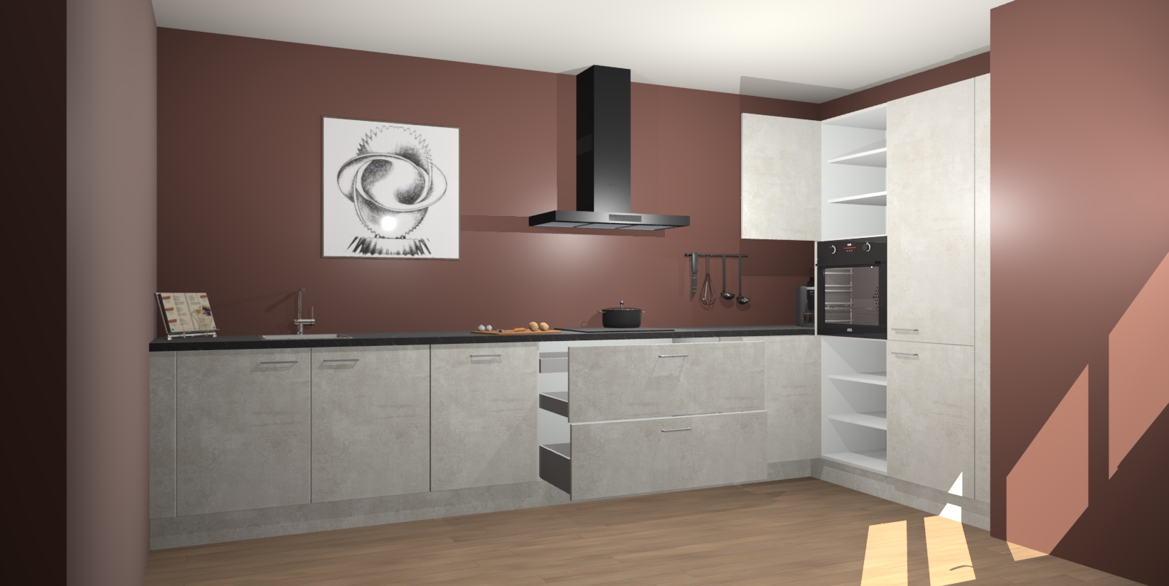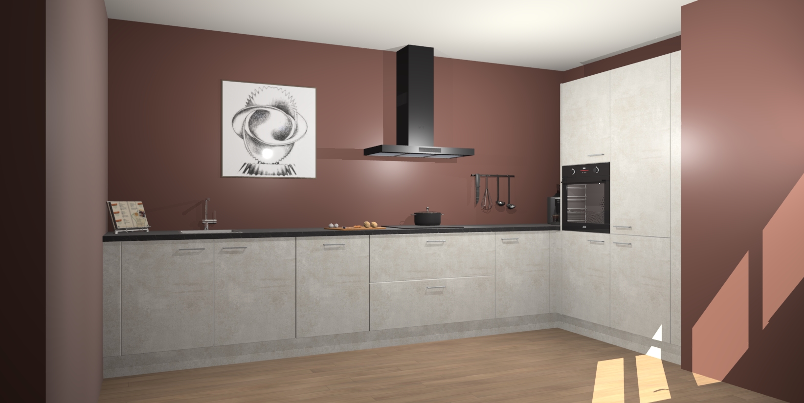 Welkom bij de Beton Opal keuken Khao Lak. Deze prachtige keuken zal de komende jaren het middelpunt van de belangstelling in uw huis zijn. Uitgerust met vijf inbouwapparaten komt u nooit kookgereedschap tekort. Bovendien geeft de warme houtlook elke ruimte een uitnodigende en tijdloze uitstraling.