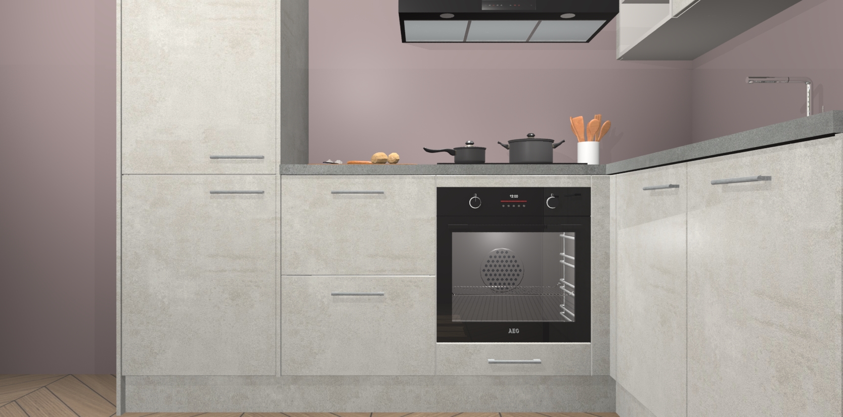Dit model biedt u voldoende opbergruimte en vijf ingebouwde apparaten: een oven, inductiekookplaat, afzuigkap, vaatwasser en koelkast. Deze apparaten kunnen gemakkelijk worden geüpgrade naar AEG nadat u besteld heeft. De verschillende laden en kastjes bevatten softclose-deuren waardoor ze gezellig dichtvallen met een geruststellend helemaal geruisloos geluid. En dat is nog niet alles! We garanderen ook dat de prijs altijd laag blijft - dus haal nu uw Beton Opal keuken Krakau terwijl het kan.