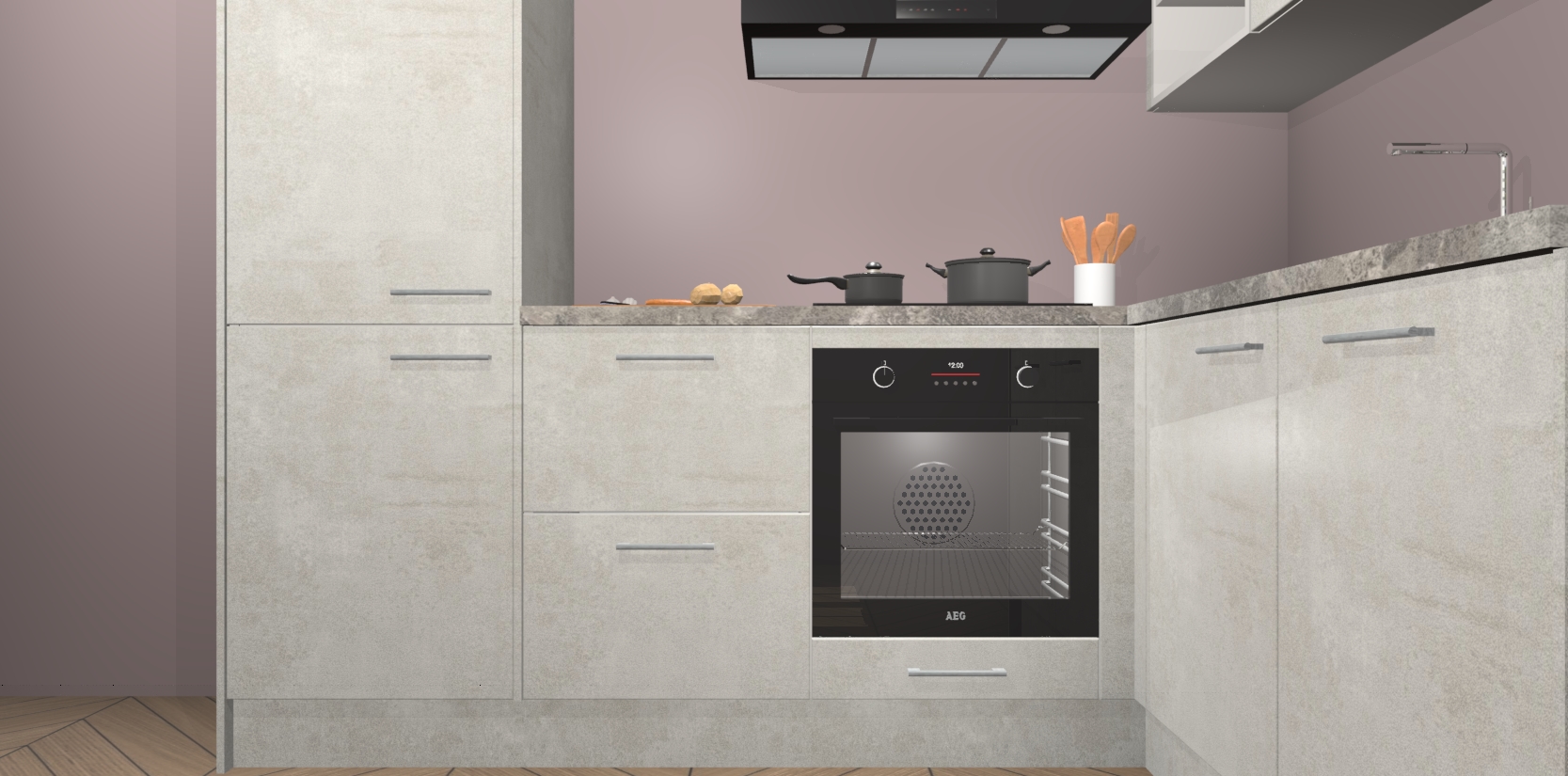 Dit model biedt u voldoende opbergruimte en vijf ingebouwde apparaten: een oven, inductiekookplaat, afzuigkap, vaatwasser en koelkast. Deze apparaten kunnen gemakkelijk worden geüpgrade naar AEG nadat u besteld heeft. De verschillende laden en kastjes bevatten softclose-deuren waardoor ze gezellig dichtvallen met een geruststellend helemaal geruisloos geluid. En dat is nog niet alles! We garanderen ook dat de prijs altijd laag blijft - dus haal nu uw Beton Opal keuken Krakau terwijl het kan.
