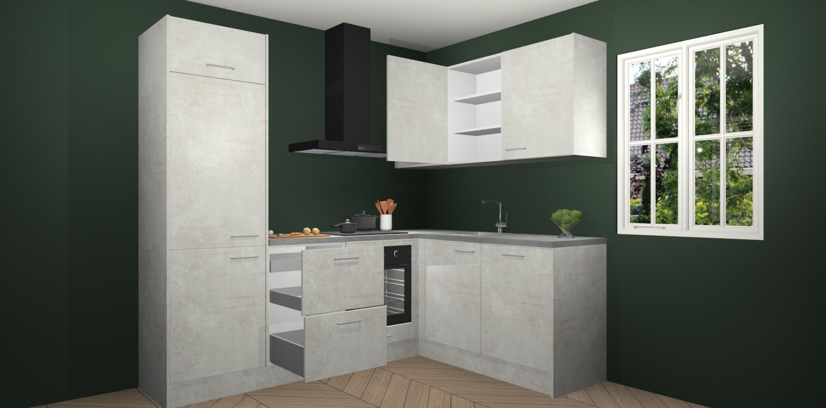 Dit model biedt u voldoende opbergruimte en vijf ingebouwde apparaten: een oven, inductiekookplaat, afzuigkap, vaatwasser en koelkast. Deze apparaten kunnen gemakkelijk worden geüpgrade naar AEG nadat u besteld heeft. De verschillende laden en kastjes bevatten softclose-deuren waardoor ze gezellig dichtvallen met een geruststellend helemaal geruisloos geluid. En dat is nog niet alles! We garanderen ook dat de prijs altijd laag blijft - dus haal nu uw Beton Opal keuken Krakau terwijl het kan.