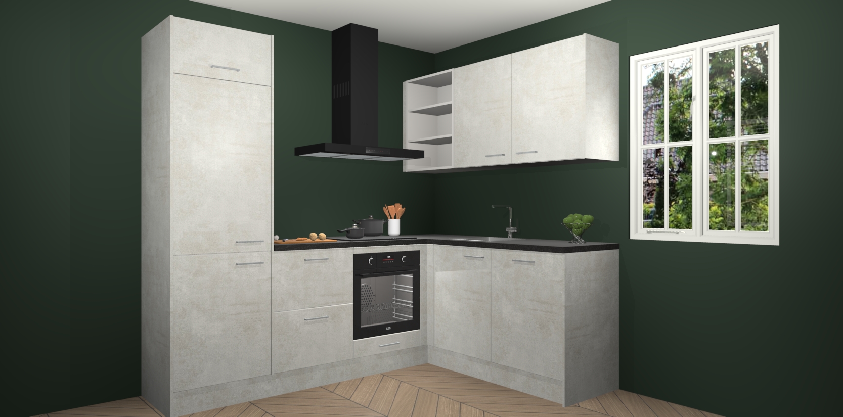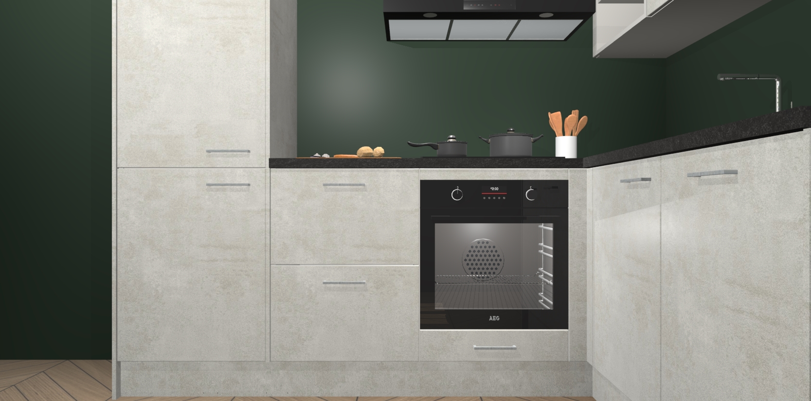 Dit model biedt u voldoende opbergruimte en vijf ingebouwde apparaten: een oven, inductiekookplaat, afzuigkap, vaatwasser en koelkast. Deze apparaten kunnen gemakkelijk worden geüpgrade naar AEG nadat u besteld heeft. De verschillende laden en kastjes bevatten softclose-deuren waardoor ze gezellig dichtvallen met een geruststellend helemaal geruisloos geluid. En dat is nog niet alles! We garanderen ook dat de prijs altijd laag blijft - dus haal nu uw Beton Opal keuken Krakau terwijl het kan.