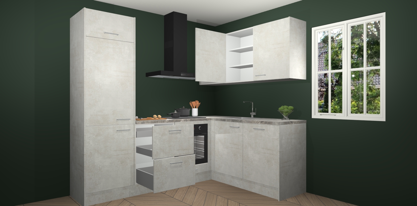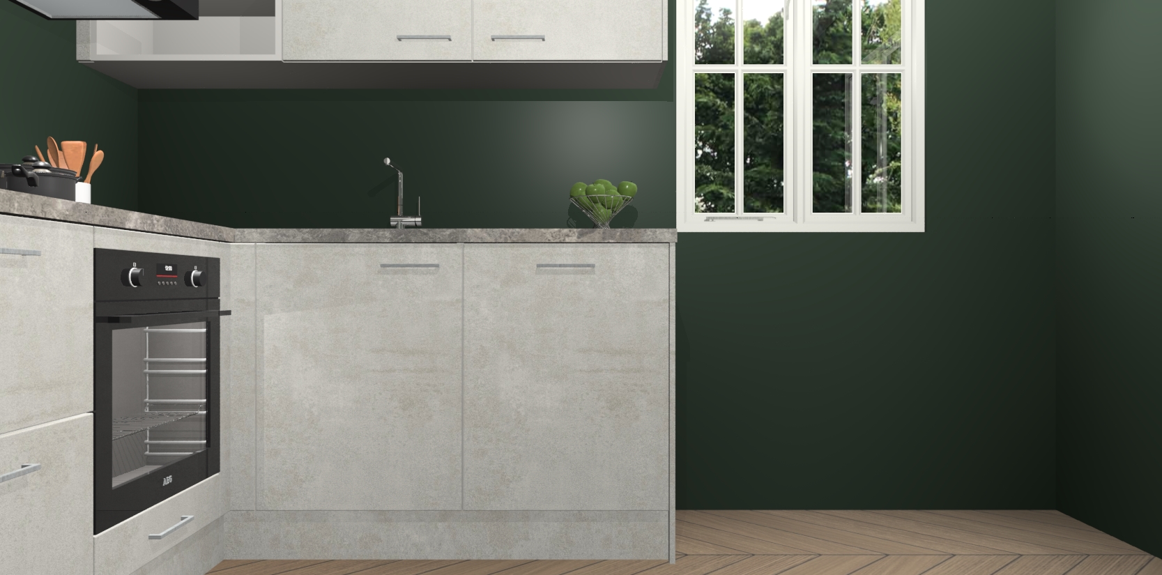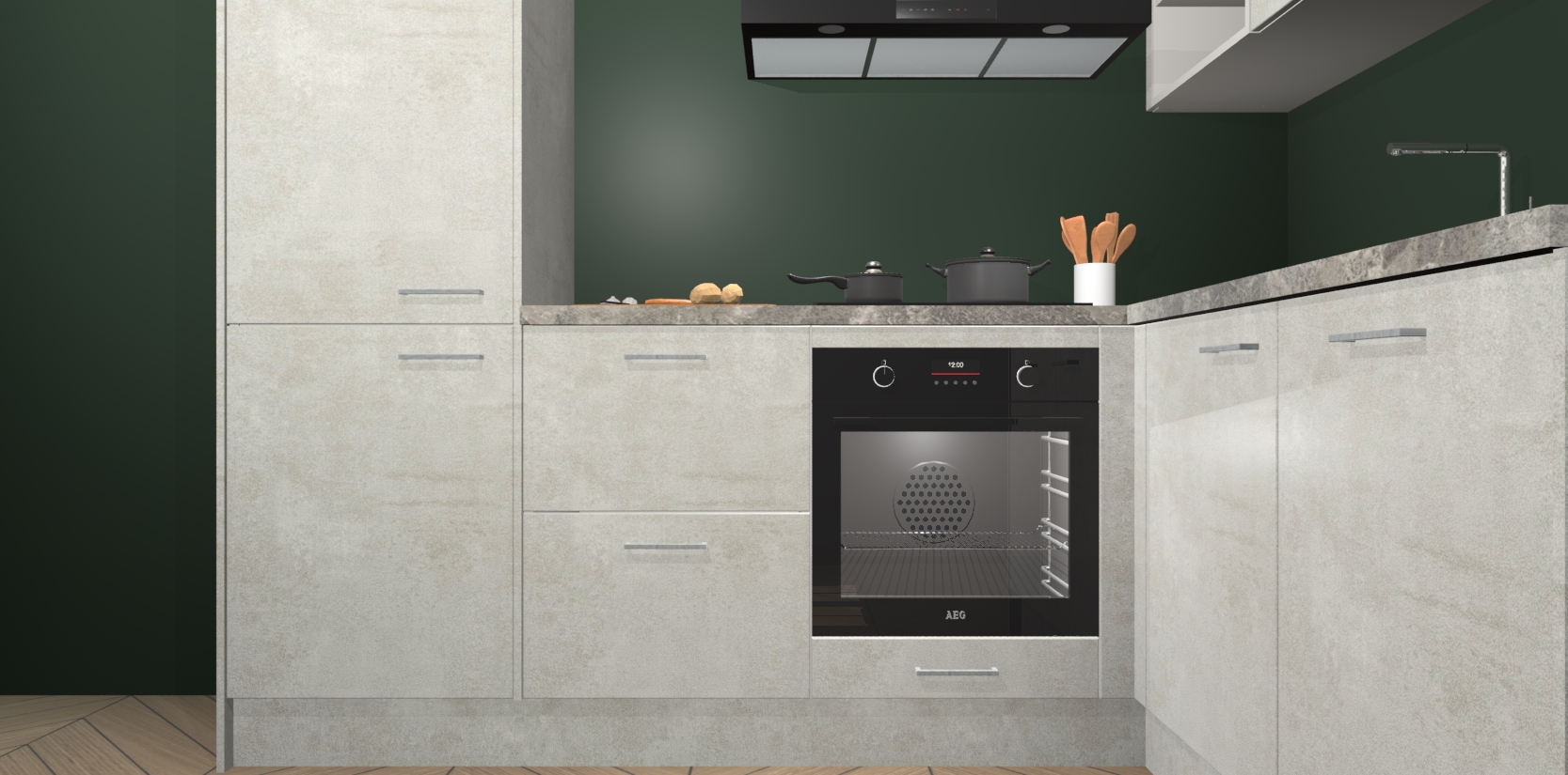 Dit model biedt u voldoende opbergruimte en vijf ingebouwde apparaten: een oven, inductiekookplaat, afzuigkap, vaatwasser en koelkast. Deze apparaten kunnen gemakkelijk worden geüpgrade naar AEG nadat u besteld heeft. De verschillende laden en kastjes bevatten softclose-deuren waardoor ze gezellig dichtvallen met een geruststellend helemaal geruisloos geluid. En dat is nog niet alles! We garanderen ook dat de prijs altijd laag blijft - dus haal nu uw Beton Opal keuken Krakau terwijl het kan.