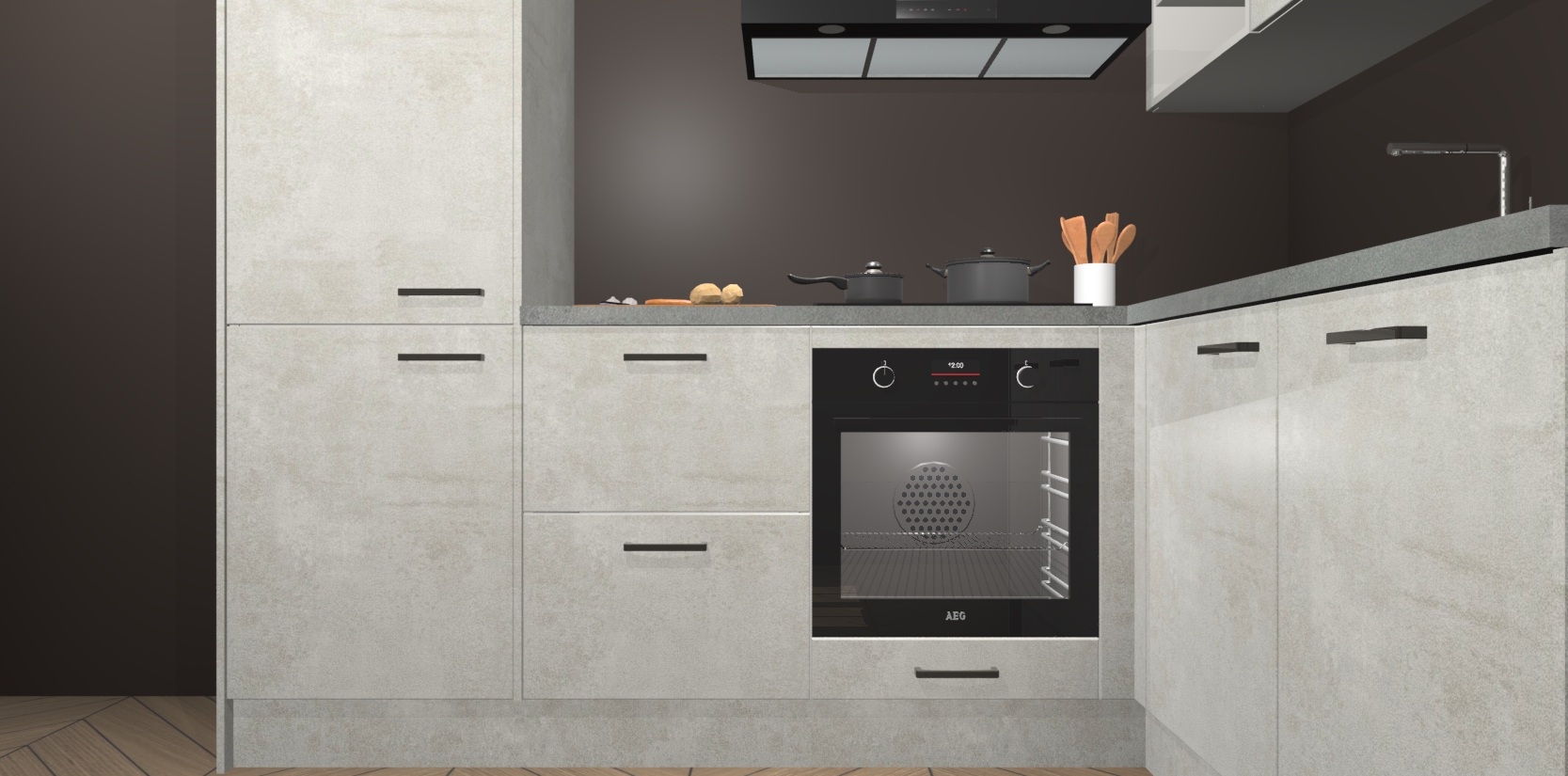 Dit model biedt u voldoende opbergruimte en vijf ingebouwde apparaten: een oven, inductiekookplaat, afzuigkap, vaatwasser en koelkast. Deze apparaten kunnen gemakkelijk worden geüpgrade naar AEG nadat u besteld heeft. De verschillende laden en kastjes bevatten softclose-deuren waardoor ze gezellig dichtvallen met een geruststellend helemaal geruisloos geluid. En dat is nog niet alles! We garanderen ook dat de prijs altijd laag blijft - dus haal nu uw Beton Opal keuken Krakau terwijl het kan.