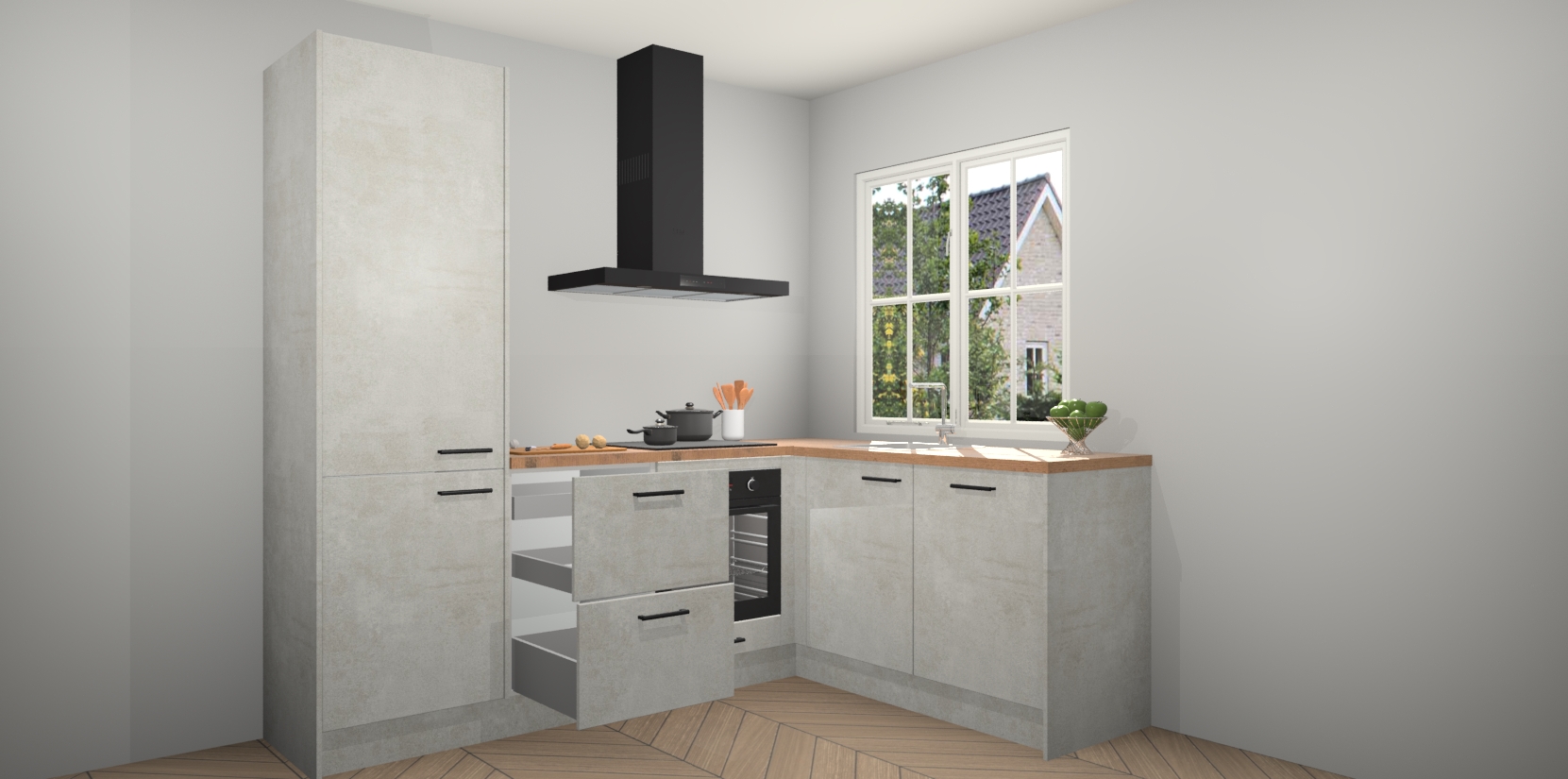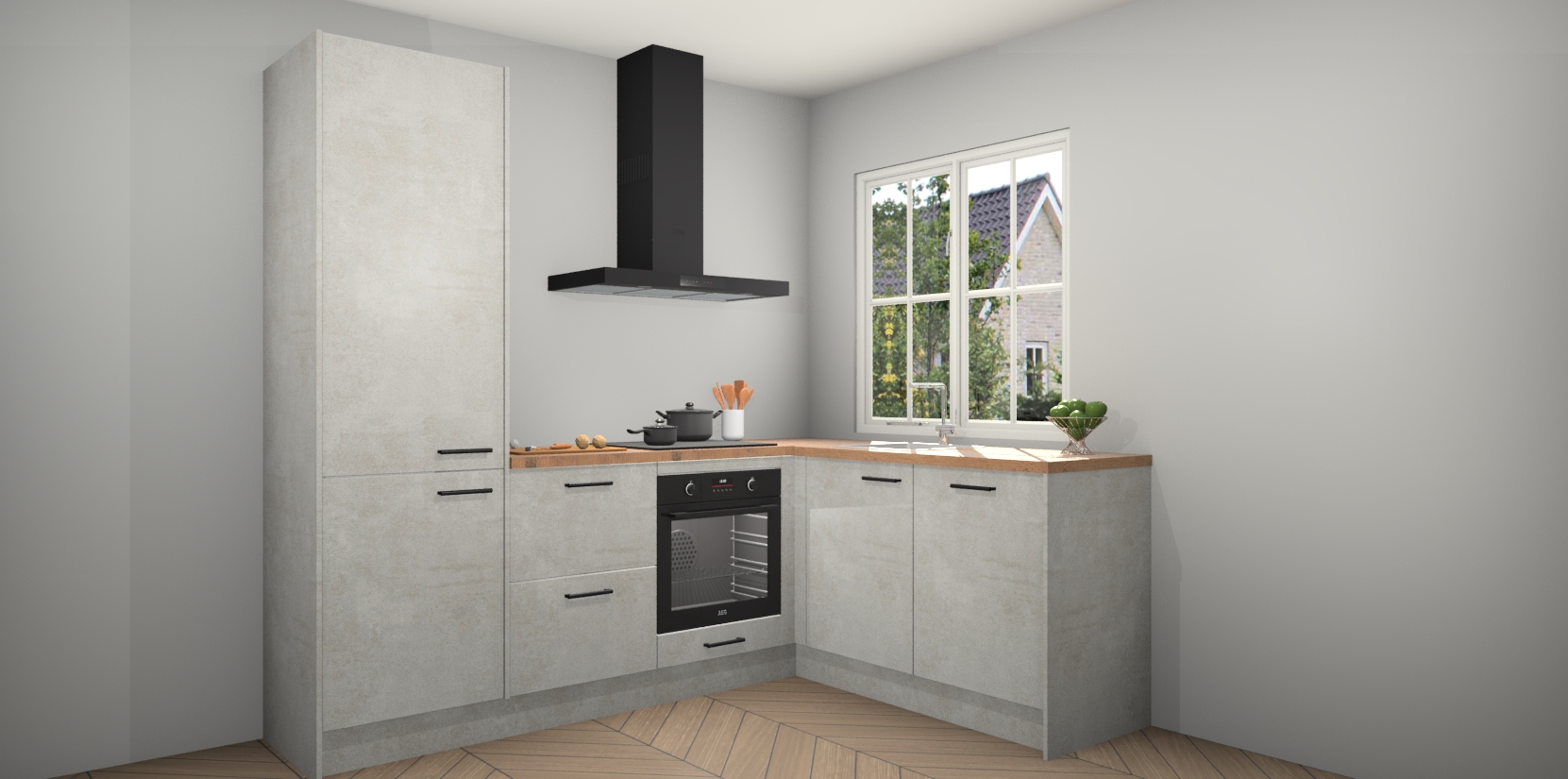 De Beton Opal keuken Linz is de perfecte keuze voor uw nieuwe moderne en tijdloze keuken. Ga voor moderne en tijdloze elegantie in uw keuken. De prachtige hoekkeuken biedt een verfrissende kijk op de manier waarop we ons vertrouwde keukenontwerp kunnen aanpassen in een nieuwe stijl. Één blik om alles te zien: zo mooi dat het bijna magisch lijkt.