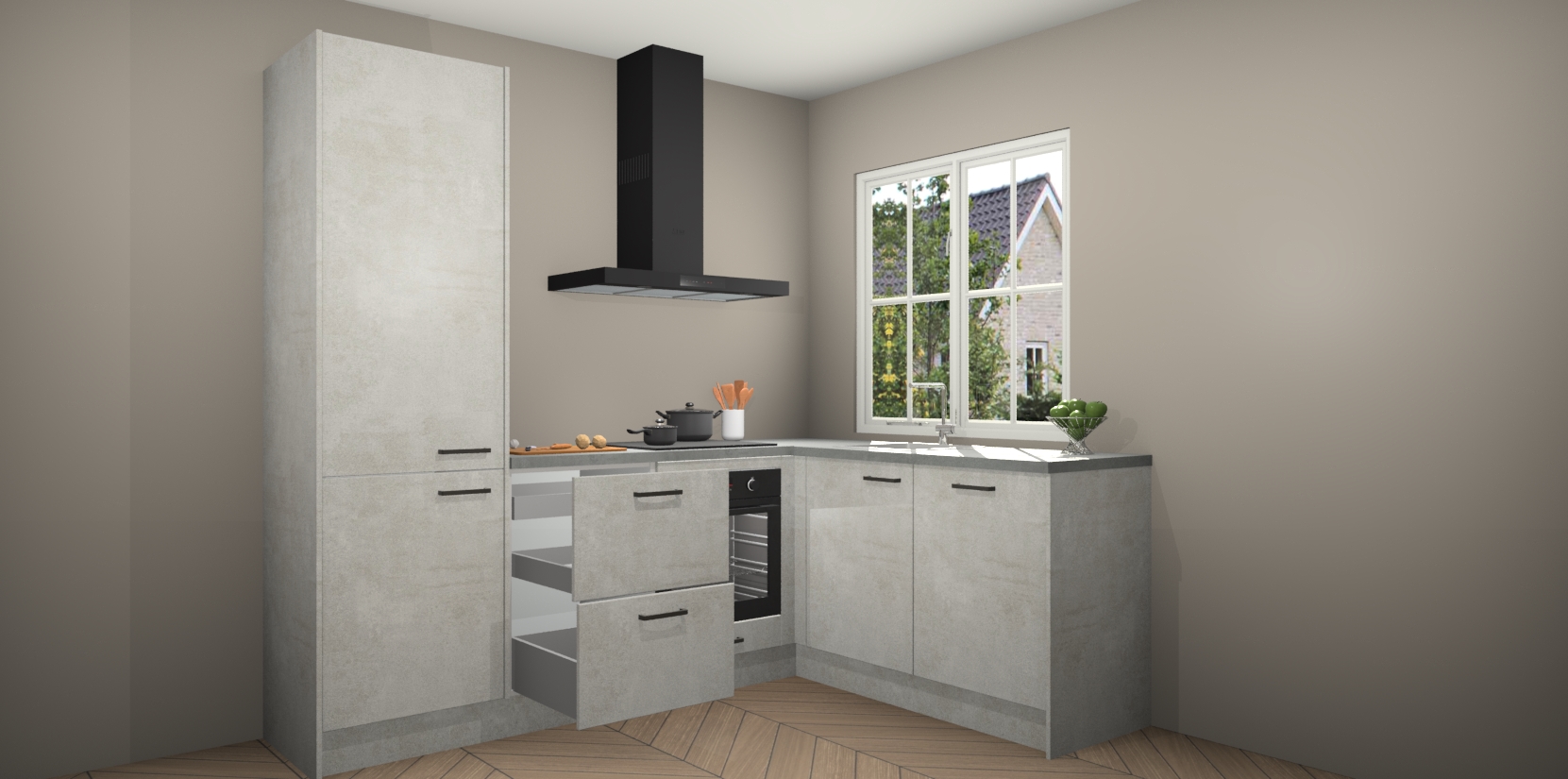 Met de Beton Opal keuken Linz krijgt u 5 op maat gemaakte apparaten: een oven, inductiekookplaat, afzuigkap, vaatwasser en koelkast die na bestelling makkelijk worden geüpgraded naar AEG-producten. Met de zacht sluitende deuren, bent u verzekerd van eenvoudige bediening in stilte. Het kastmeubilair wordt alvast pre-assemblage geleverd waardoor u sneller met het installeren begint. Ook zijn alle deuren voorzien van softclose zodat er geen sporen op de lade blijven als u ze dicht doet. Bovendien hoeft u bij ons geen twijfels of verassingen te hebben: we hebben een vaste lage prijs waardoor u weet wat u mag verwachten bij elke bestelling.