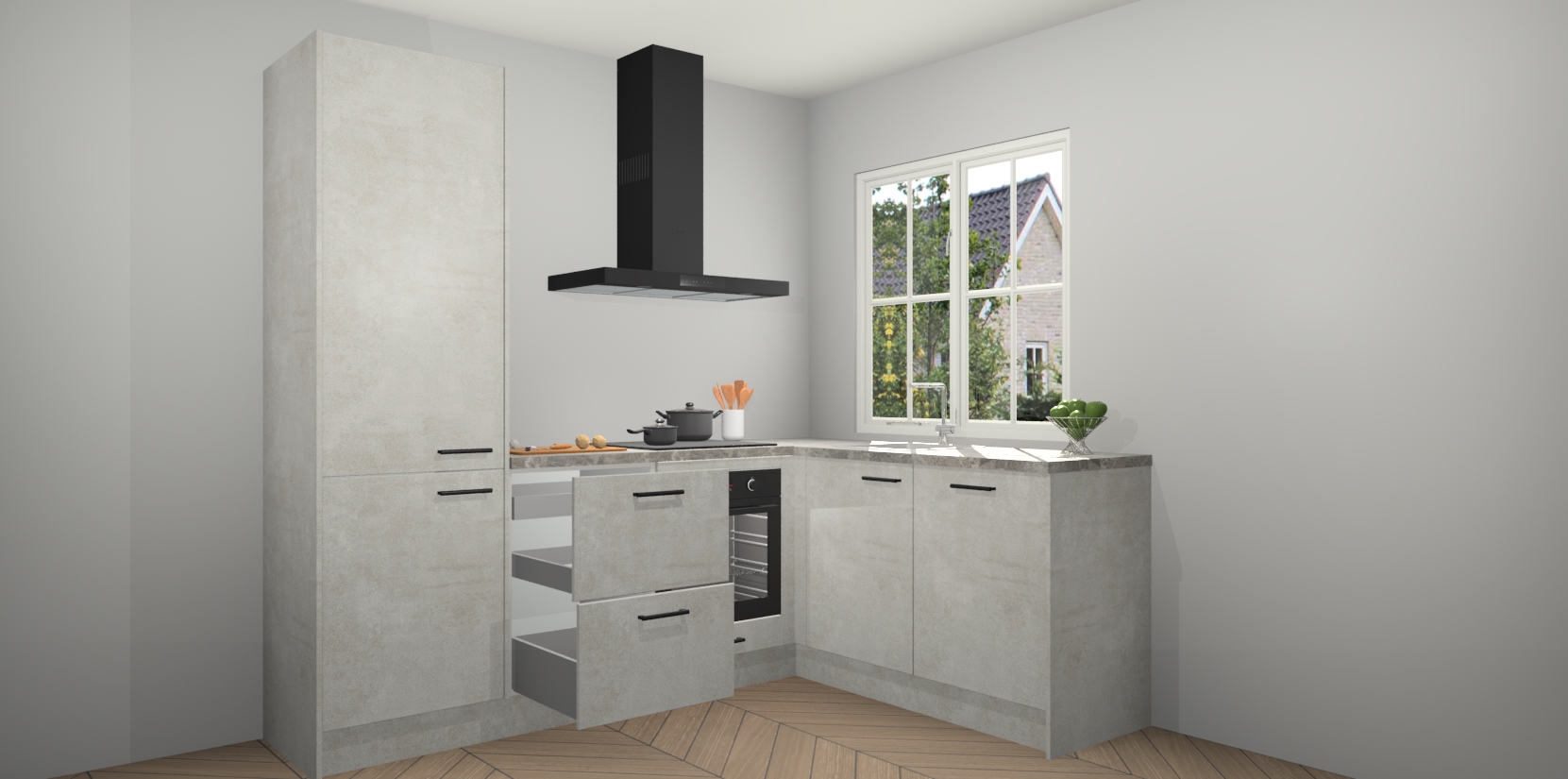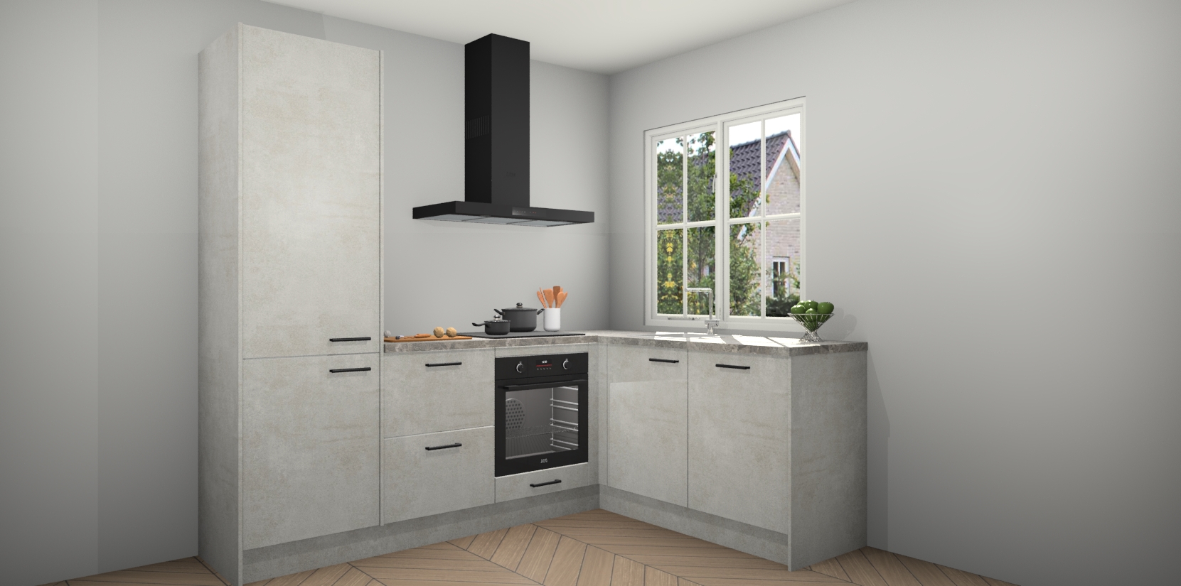De Beton Opal keuken Linz is de perfecte keuze voor uw nieuwe moderne en tijdloze keuken. Ga voor moderne en tijdloze elegantie in uw keuken. De prachtige hoekkeuken biedt een verfrissende kijk op de manier waarop we ons vertrouwde keukenontwerp kunnen aanpassen in een nieuwe stijl. Één blik om alles te zien: zo mooi dat het bijna magisch lijkt.