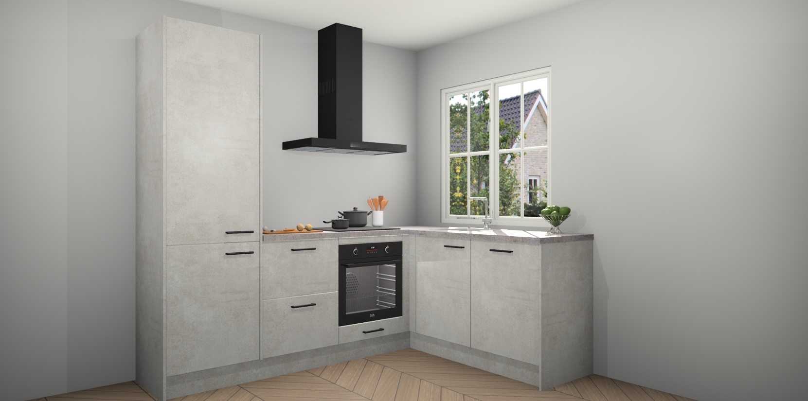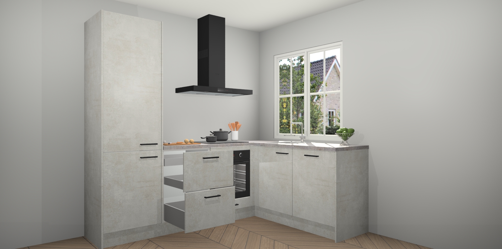 De Beton Opal keuken Linz is de perfecte keuze voor uw nieuwe moderne en tijdloze keuken. Ga voor moderne en tijdloze elegantie in uw keuken. De prachtige hoekkeuken biedt een verfrissende kijk op de manier waarop we ons vertrouwde keukenontwerp kunnen aanpassen in een nieuwe stijl. Één blik om alles te zien: zo mooi dat het bijna magisch lijkt.