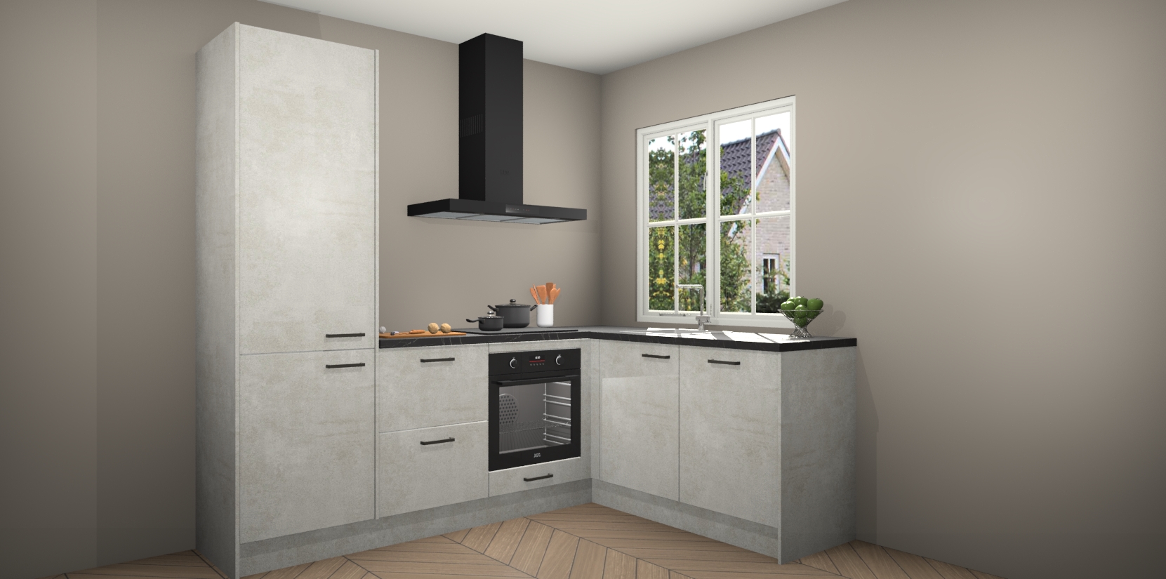 De Beton Opal keuken Linz is de perfecte keuze voor uw nieuwe moderne en tijdloze keuken. Ga voor moderne en tijdloze elegantie in uw keuken. De prachtige hoekkeuken biedt een verfrissende kijk op de manier waarop we ons vertrouwde keukenontwerp kunnen aanpassen in een nieuwe stijl. Één blik om alles te zien: zo mooi dat het bijna magisch lijkt.