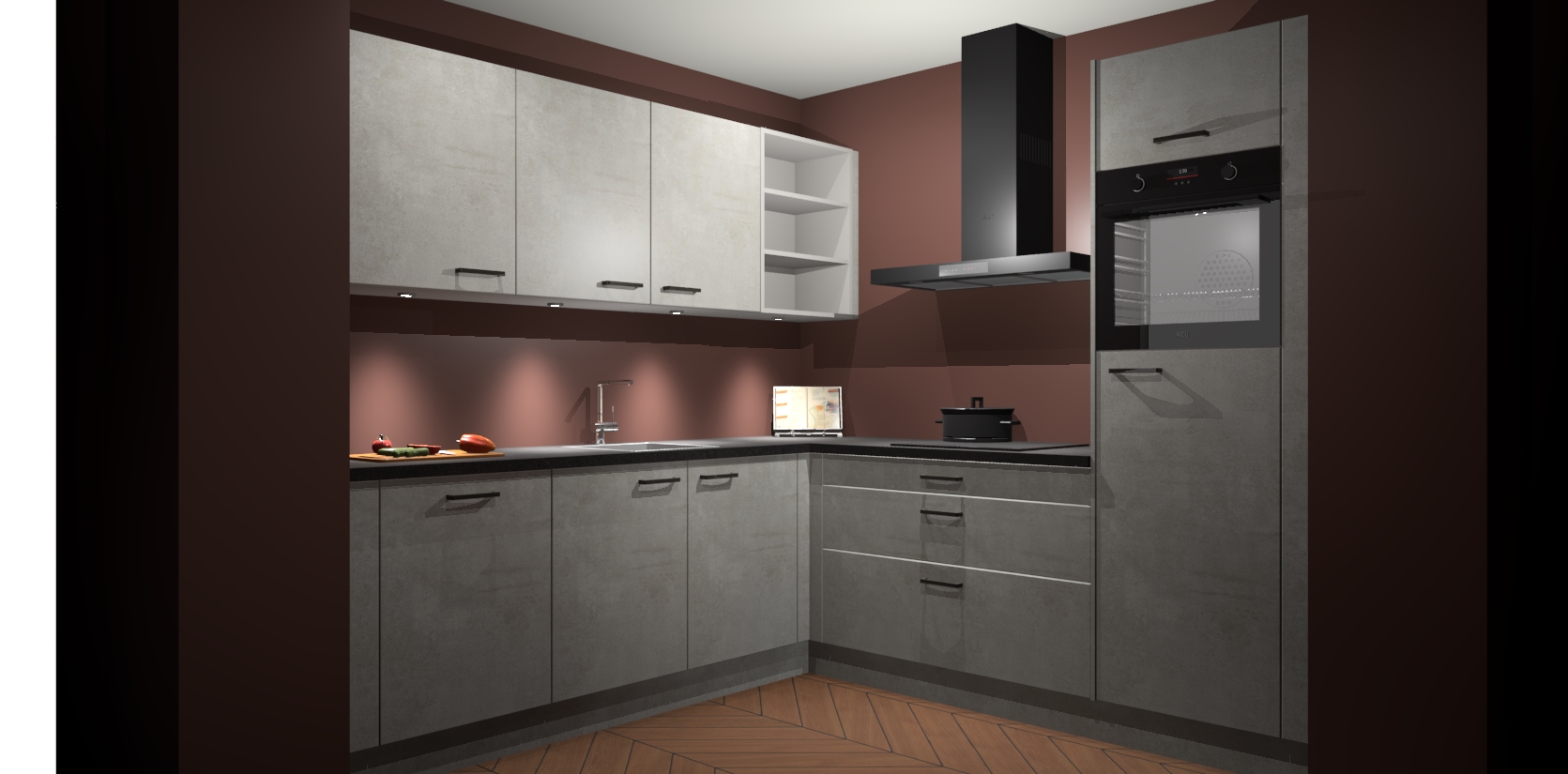 Met een modern, tijdloos design en ruime opslagruimte, zult u zich in no-time thuis voelen in uw nieuwe keuken. Uw leven wordt eenvoudiger met de soft-close deuren die voor het ultieme stille comfort zorgen - geen geluid dat u stoort terwijl u kookt. Ook is de keuken voorzien van 5 ingebouwde apparaten: een oven, inductie kookplaat, afzuigkap, vaatwasser en koelkast. Deze kunnen gemakkelijk na bestelling worden bijgewerkt naar AEG - waardoor uw luxe ervaring compleet is.