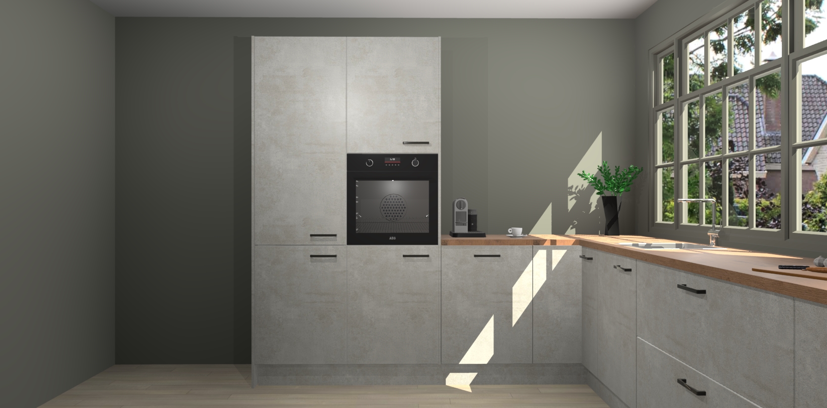 Kom dichtbij de perfecte keuken van uw dromen met de Beton Opal keuken Malaga. Met een prachtige houtlook en eigentijds ontwerp, straalt deze keuken warmte en sfeer uit. Of u nu liefhebber bent van traditionele of moderne stijlen, er is genoeg ruimte om aan al uw behoeften te voldoen.