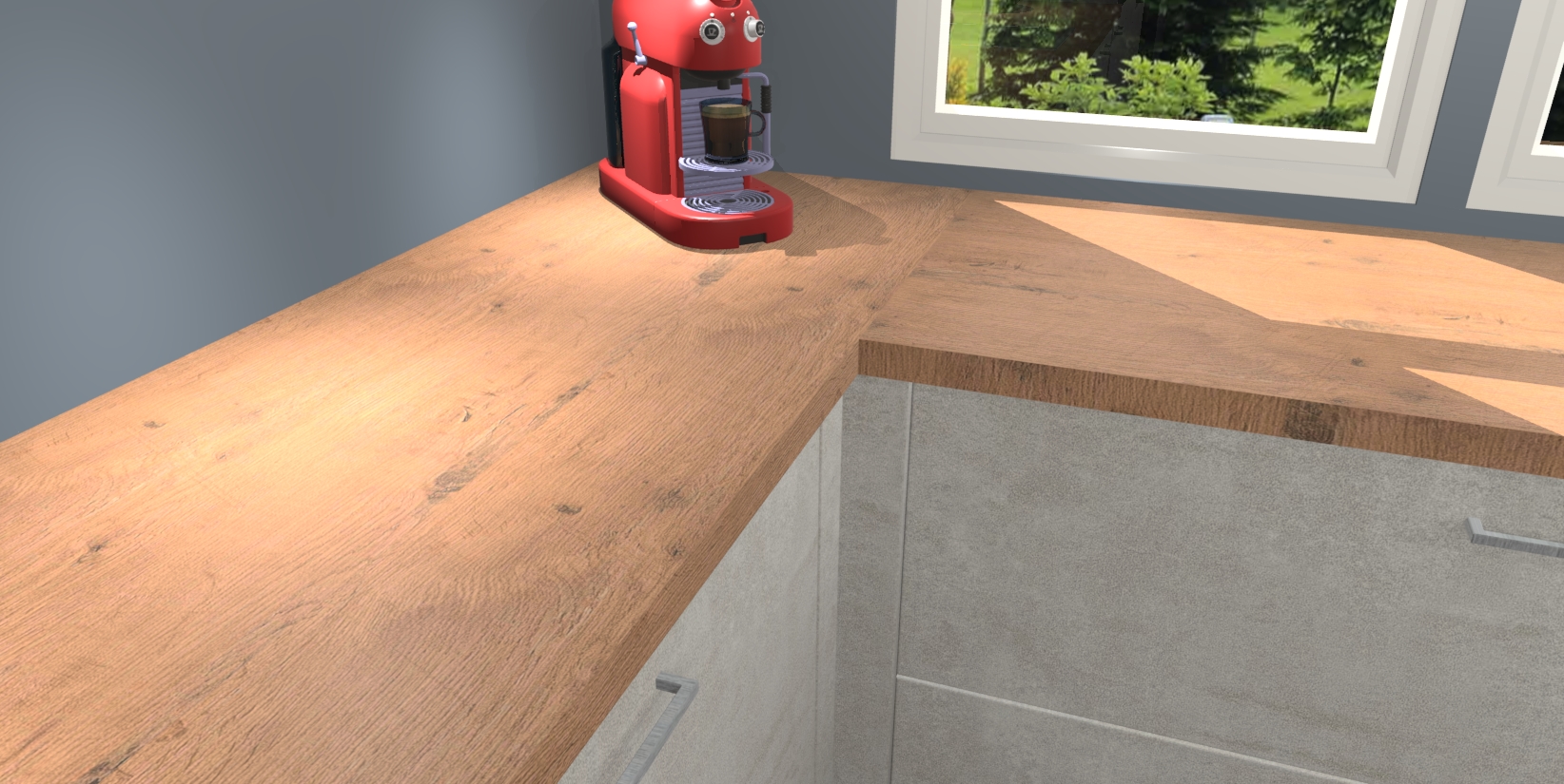 - Bij een hoekwerkblad zijn de hoeken in gevreesd en op maat gemaakt