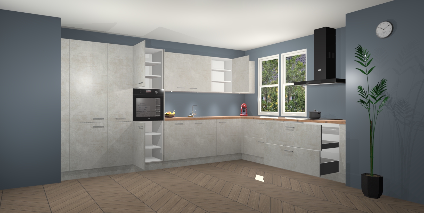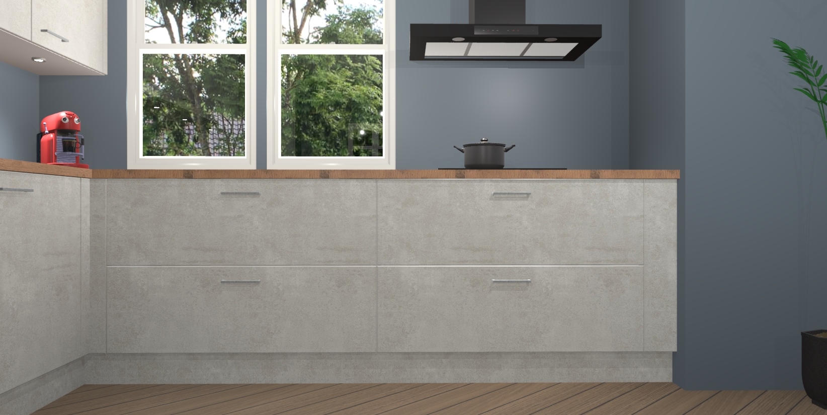 Inclusief plinten, stelpoten en werkblad