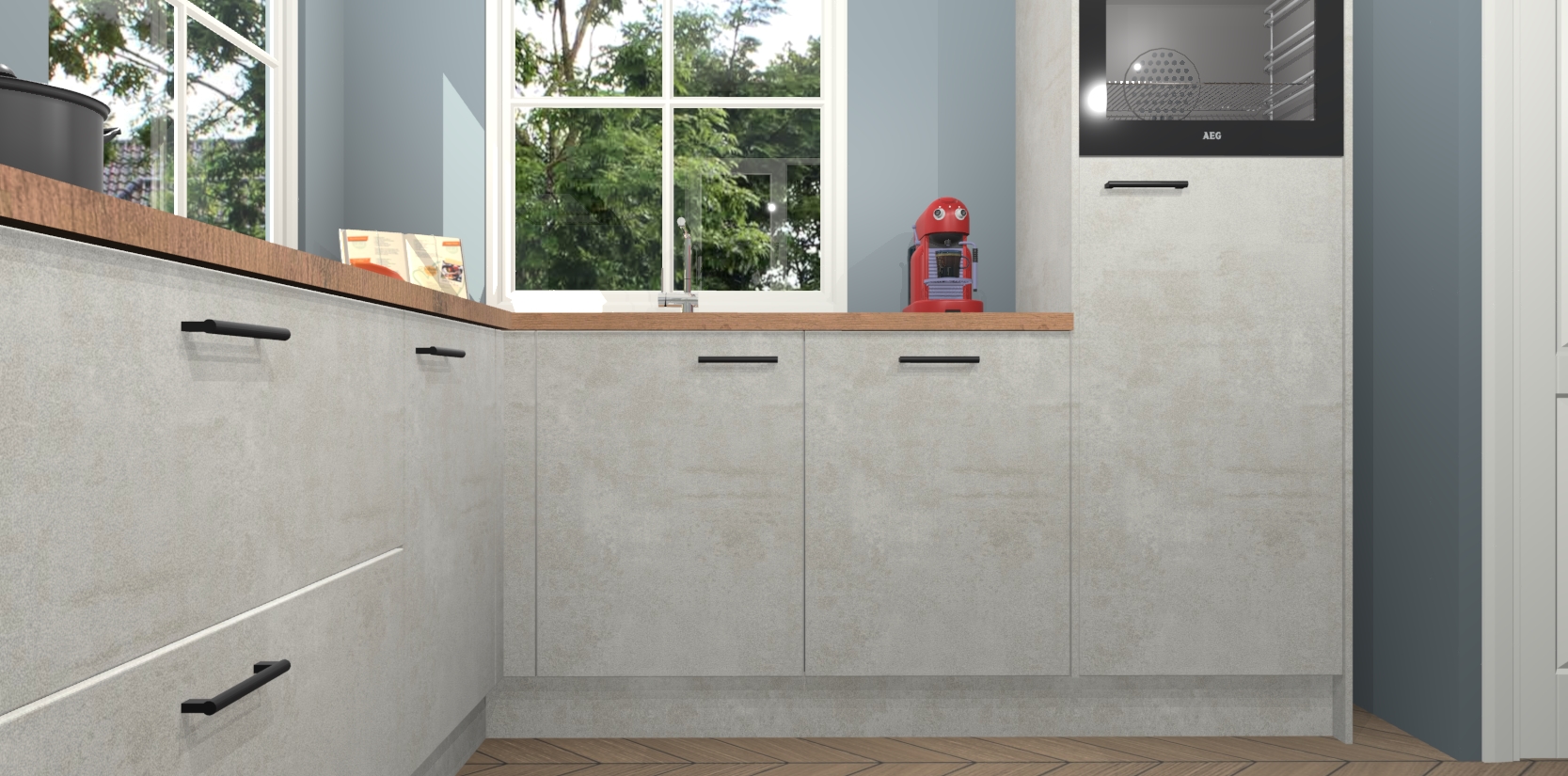 De Beton Opal keuken Pai bevat vijf essentiële inbouwapparaten - een oven, inductiekookplaat, afzuigkap, vaatwasser en koelkast - zodat u er na levering meteen in kunt. Voor de slimme kopers die weten dat apparaten vaak het verschil kunnen maken tussen functioneel en luxueus, bieden we eenvoudige upgradeopties naar AEG, van oven naar combimagnetron na bestelling of naar een kookplaat met geïntrigeerde afzuiging. En met onze vaste lage prijs en snelle levering binnen zeven weken vanaf de orderbevestiging hoeft u zich geen zorgen te maken over verborgen kosten of lange levertijden die uw droomkeuken kunnen vertragen.