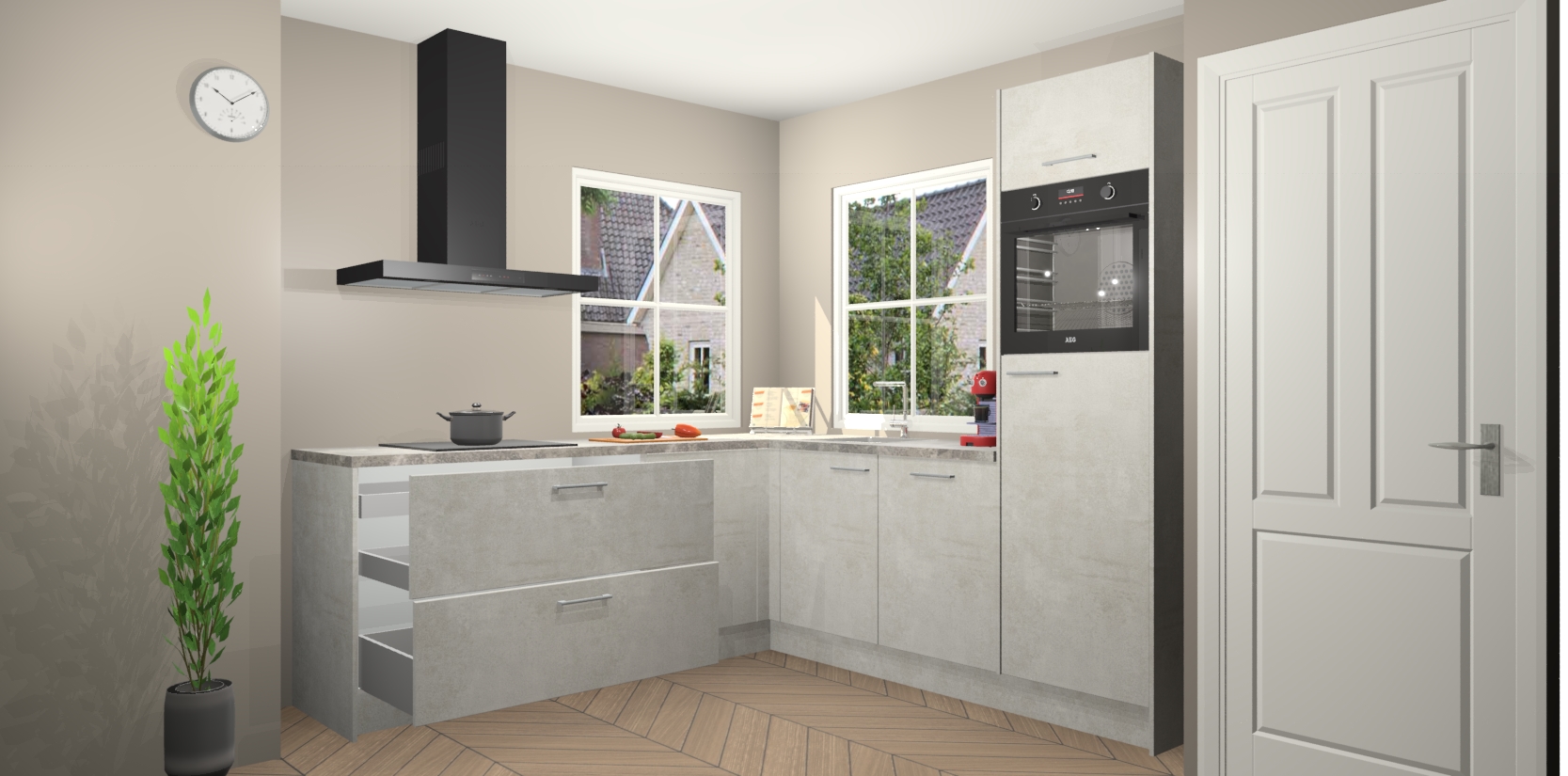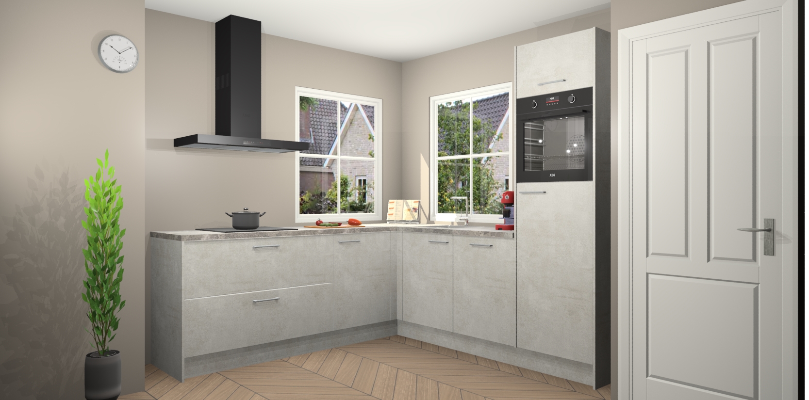 De Beton Opal keuken Pai bevat vijf essentiële inbouwapparaten - een oven, inductiekookplaat, afzuigkap, vaatwasser en koelkast - zodat u er na levering meteen in kunt. Voor de slimme kopers die weten dat apparaten vaak het verschil kunnen maken tussen functioneel en luxueus, bieden we eenvoudige upgradeopties naar AEG, van oven naar combimagnetron na bestelling of naar een kookplaat met geïntrigeerde afzuiging. En met onze vaste lage prijs en snelle levering binnen zeven weken vanaf de orderbevestiging hoeft u zich geen zorgen te maken over verborgen kosten of lange levertijden die uw droomkeuken kunnen vertragen.