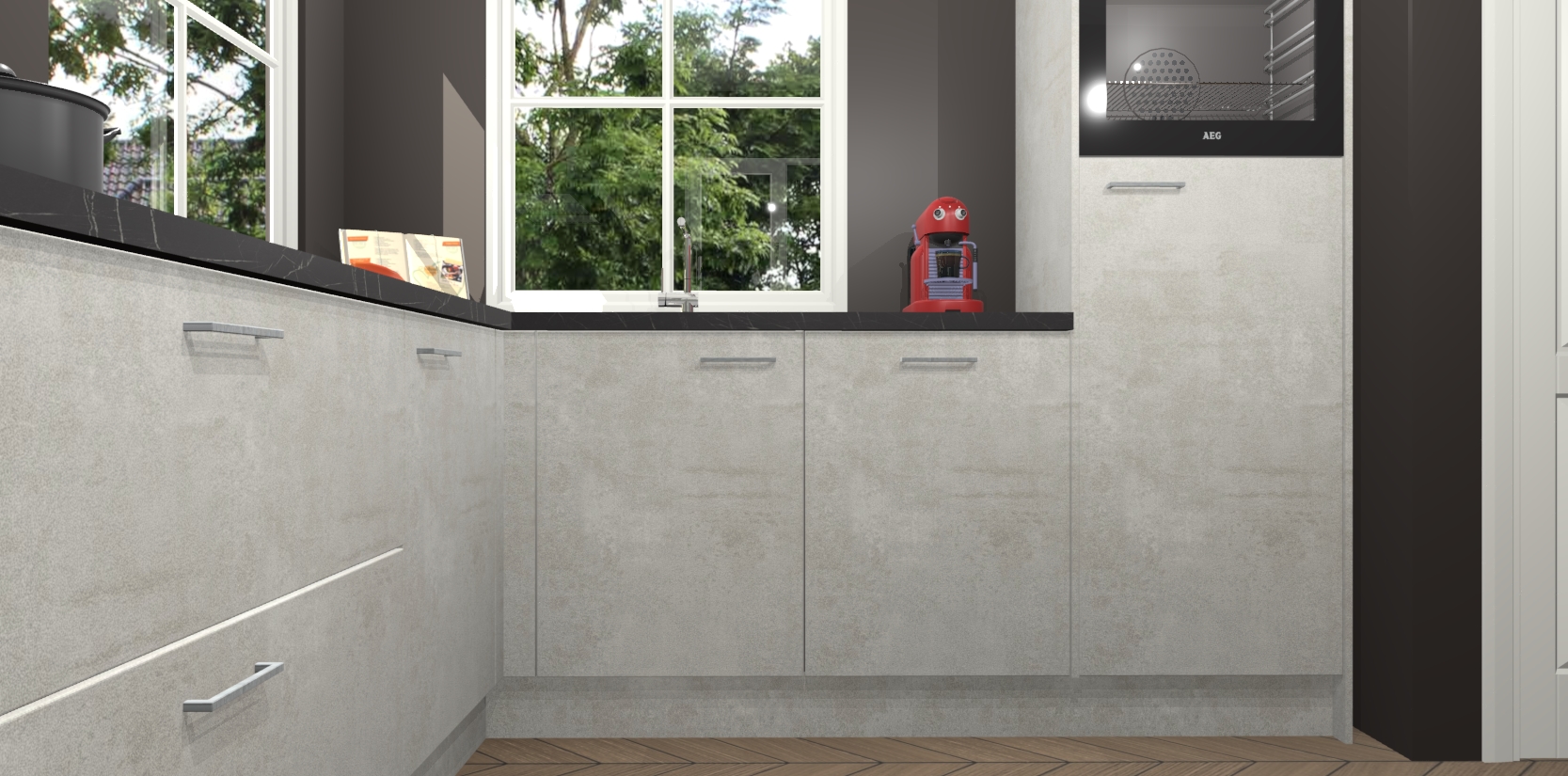 De Beton Opal keuken Pai bevat vijf essentiële inbouwapparaten - een oven, inductiekookplaat, afzuigkap, vaatwasser en koelkast - zodat u er na levering meteen in kunt. Voor de slimme kopers die weten dat apparaten vaak het verschil kunnen maken tussen functioneel en luxueus, bieden we eenvoudige upgradeopties naar AEG, van oven naar combimagnetron na bestelling of naar een kookplaat met geïntrigeerde afzuiging. En met onze vaste lage prijs en snelle levering binnen zeven weken vanaf de orderbevestiging hoeft u zich geen zorgen te maken over verborgen kosten of lange levertijden die uw droomkeuken kunnen vertragen.