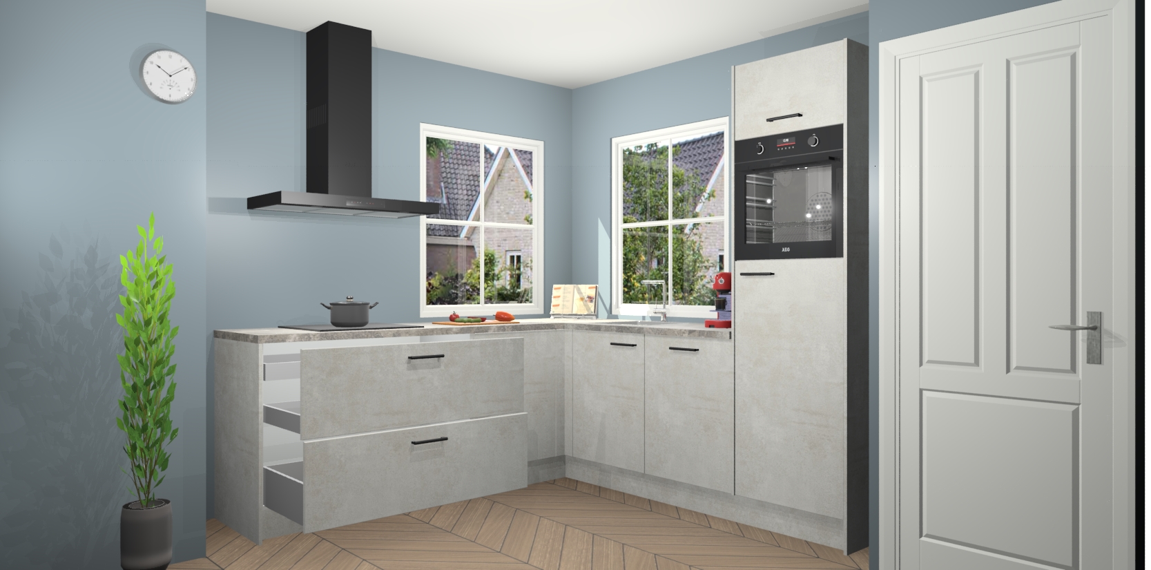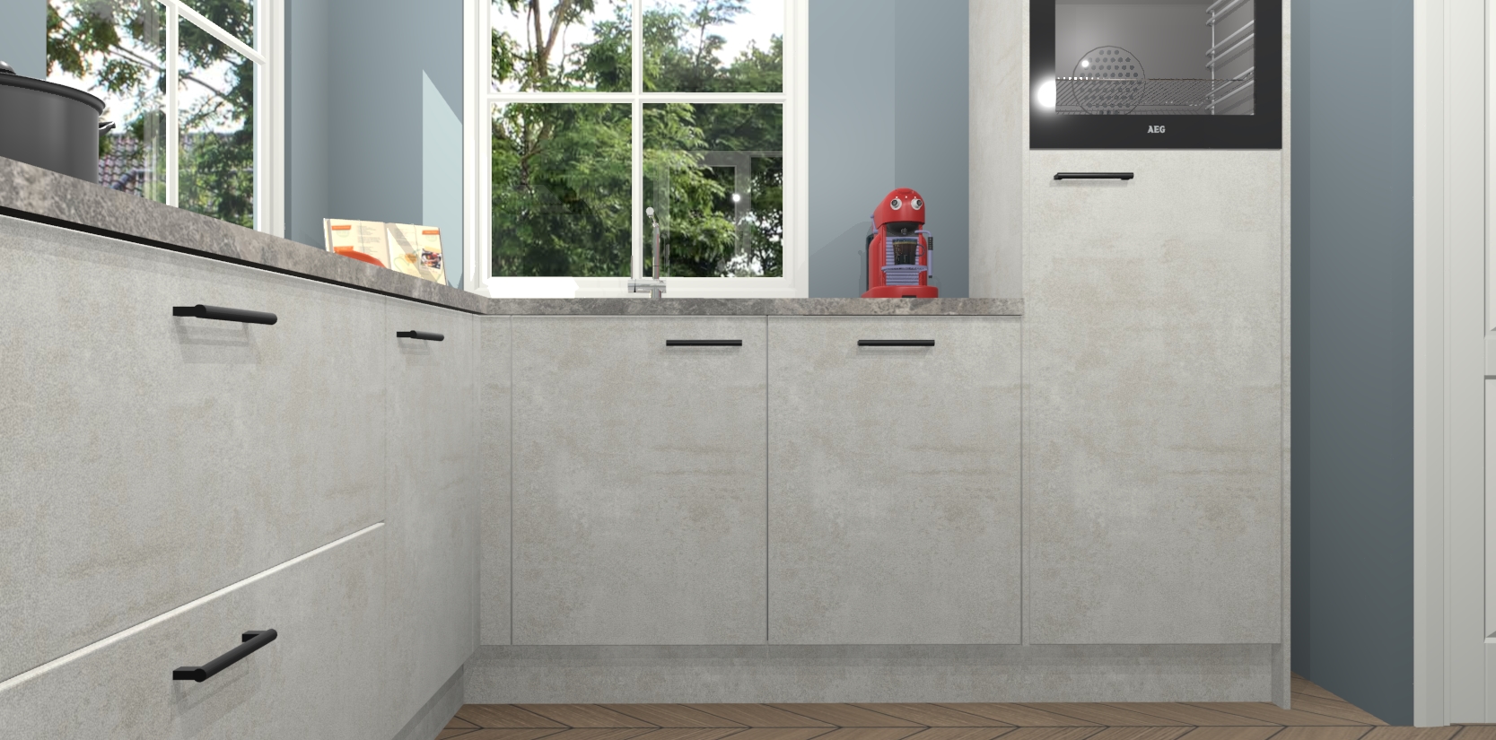 De Beton Opal keuken Pai bevat vijf essentiële inbouwapparaten - een oven, inductiekookplaat, afzuigkap, vaatwasser en koelkast - zodat u er na levering meteen in kunt. Voor de slimme kopers die weten dat apparaten vaak het verschil kunnen maken tussen functioneel en luxueus, bieden we eenvoudige upgradeopties naar AEG, van oven naar combimagnetron na bestelling of naar een kookplaat met geïntrigeerde afzuiging. En met onze vaste lage prijs en snelle levering binnen zeven weken vanaf de orderbevestiging hoeft u zich geen zorgen te maken over verborgen kosten of lange levertijden die uw droomkeuken kunnen vertragen.