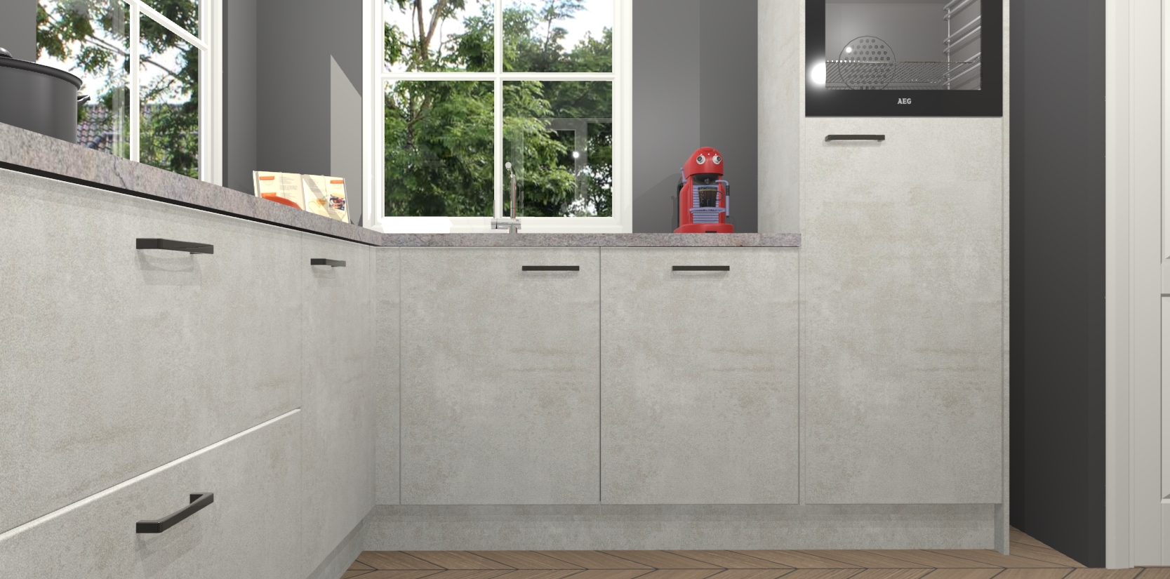 De Beton Opal keuken Pai bevat vijf essentiële inbouwapparaten - een oven, inductiekookplaat, afzuigkap, vaatwasser en koelkast - zodat u er na levering meteen in kunt. Voor de slimme kopers die weten dat apparaten vaak het verschil kunnen maken tussen functioneel en luxueus, bieden we eenvoudige upgradeopties naar AEG, van oven naar combimagnetron na bestelling of naar een kookplaat met geïntrigeerde afzuiging. En met onze vaste lage prijs en snelle levering binnen zeven weken vanaf de orderbevestiging hoeft u zich geen zorgen te maken over verborgen kosten of lange levertijden die uw droomkeuken kunnen vertragen.