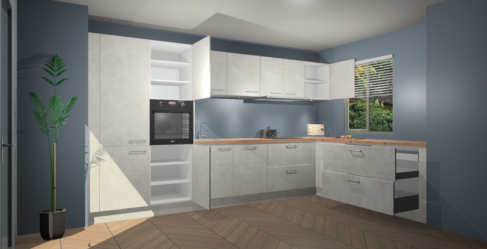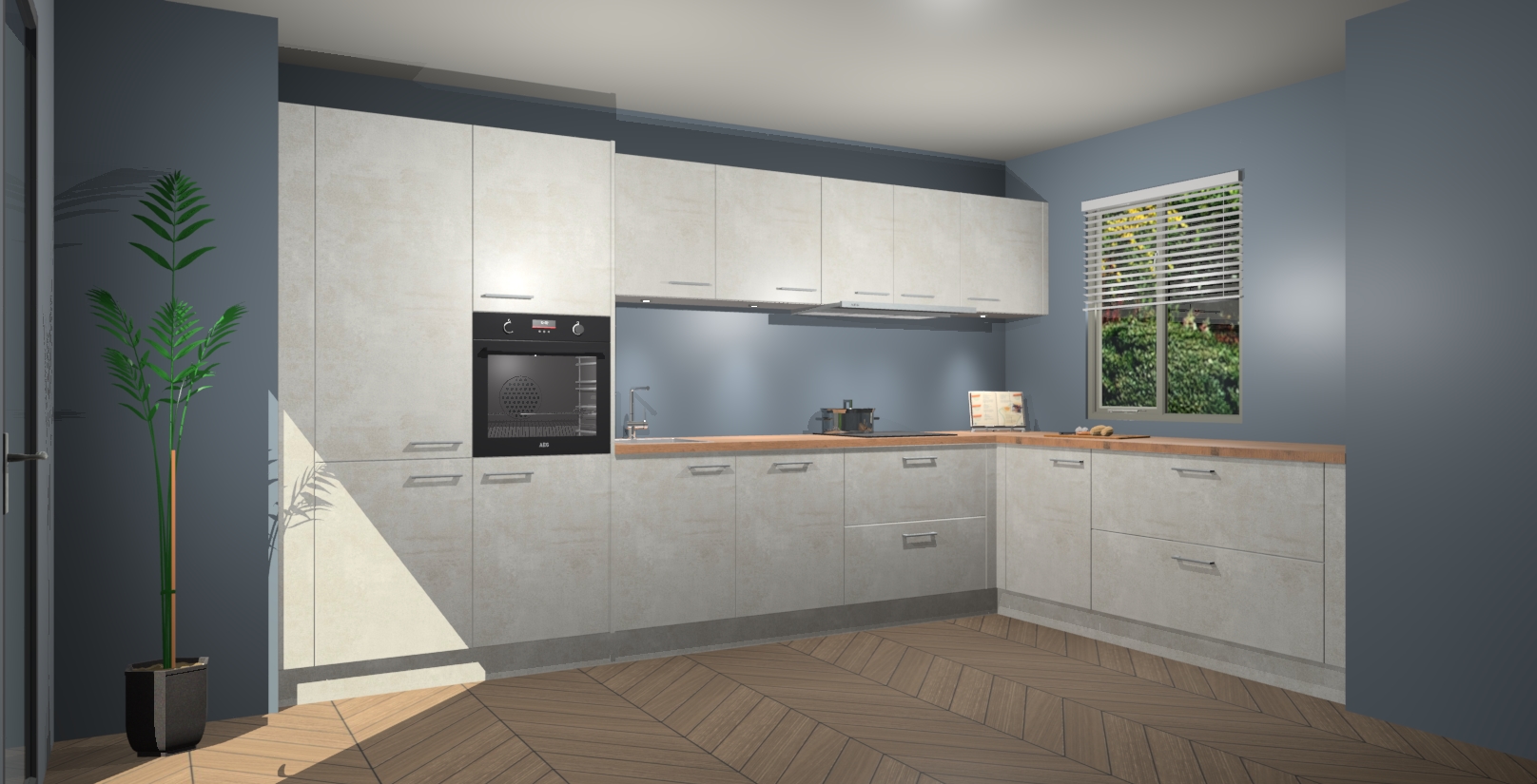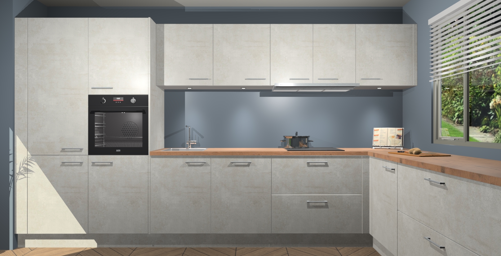 Verwelkom de natuurlijke warmte van de Beton Opal keuken Petten in uw huis. Deze prachtige hoekkeuken met zijn moderne design en warme houten look geeft u meer dan genoeg opbergruimte om uw comfortabel te voelen in uw keuken. Geniet van soft-close deuren die al uw gasten het gevoel zullen geven dat ze zich in een luxueuze ruimte bevinden.