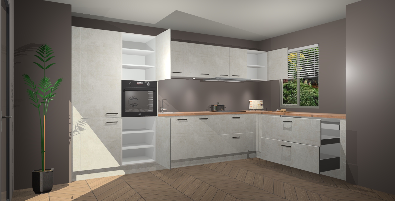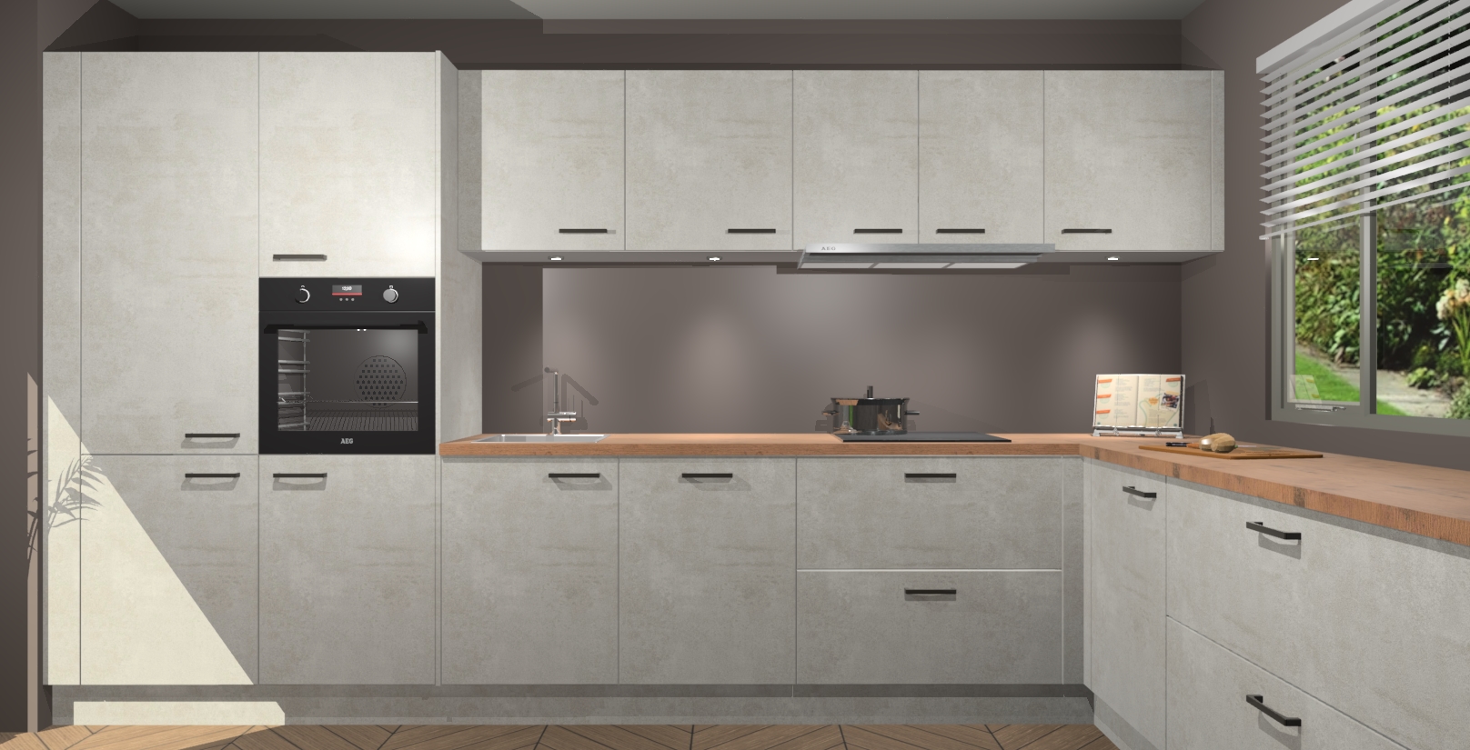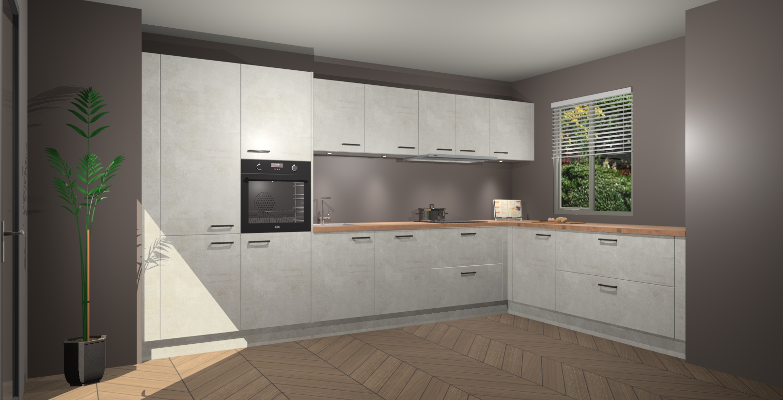 Verwelkom de natuurlijke warmte van de Beton Opal keuken Petten in uw huis. Deze prachtige hoekkeuken met zijn moderne design en warme houten look geeft u meer dan genoeg opbergruimte om uw comfortabel te voelen in uw keuken. Geniet van soft-close deuren die al uw gasten het gevoel zullen geven dat ze zich in een luxueuze ruimte bevinden.