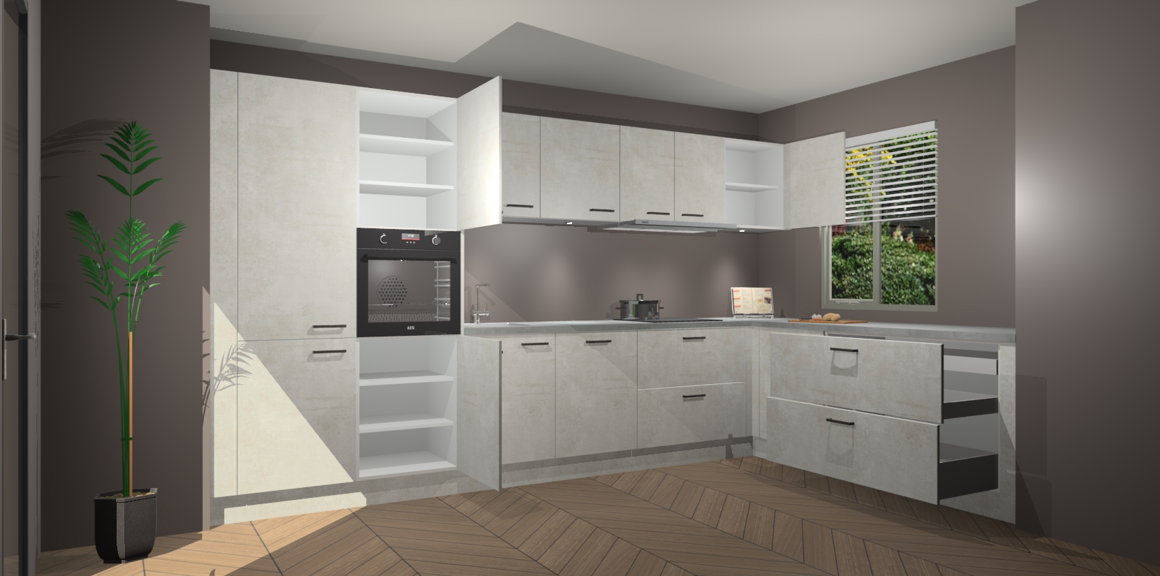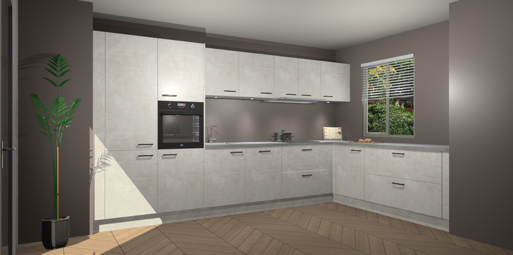 Verwelkom de natuurlijke warmte van de Beton Opal keuken Petten in uw huis. Deze prachtige hoekkeuken met zijn moderne design en warme houten look geeft u meer dan genoeg opbergruimte om uw comfortabel te voelen in uw keuken. Geniet van soft-close deuren die al uw gasten het gevoel zullen geven dat ze zich in een luxueuze ruimte bevinden.