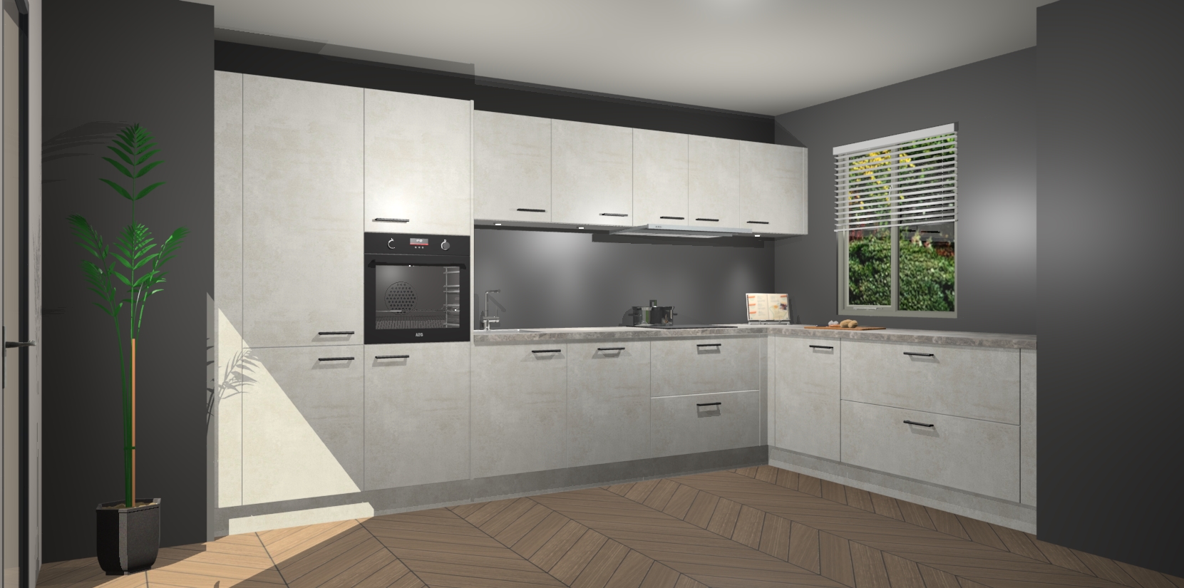 Verwelkom de natuurlijke warmte van de Beton Opal keuken Petten in uw huis. Deze prachtige hoekkeuken met zijn moderne design en warme houten look geeft u meer dan genoeg opbergruimte om uw comfortabel te voelen in uw keuken. Geniet van soft-close deuren die al uw gasten het gevoel zullen geven dat ze zich in een luxueuze ruimte bevinden.