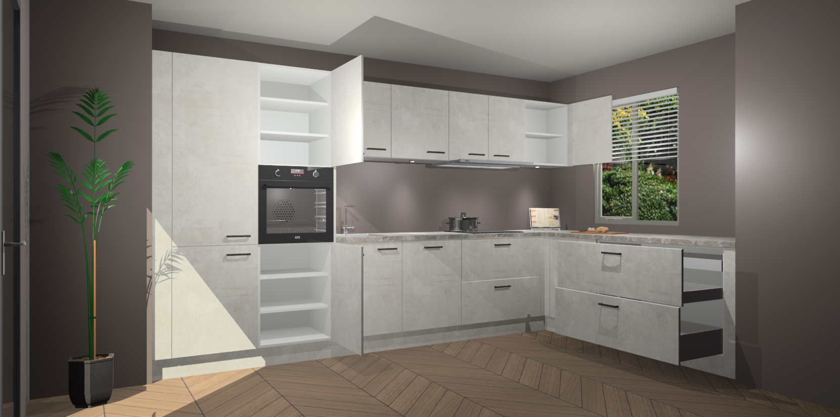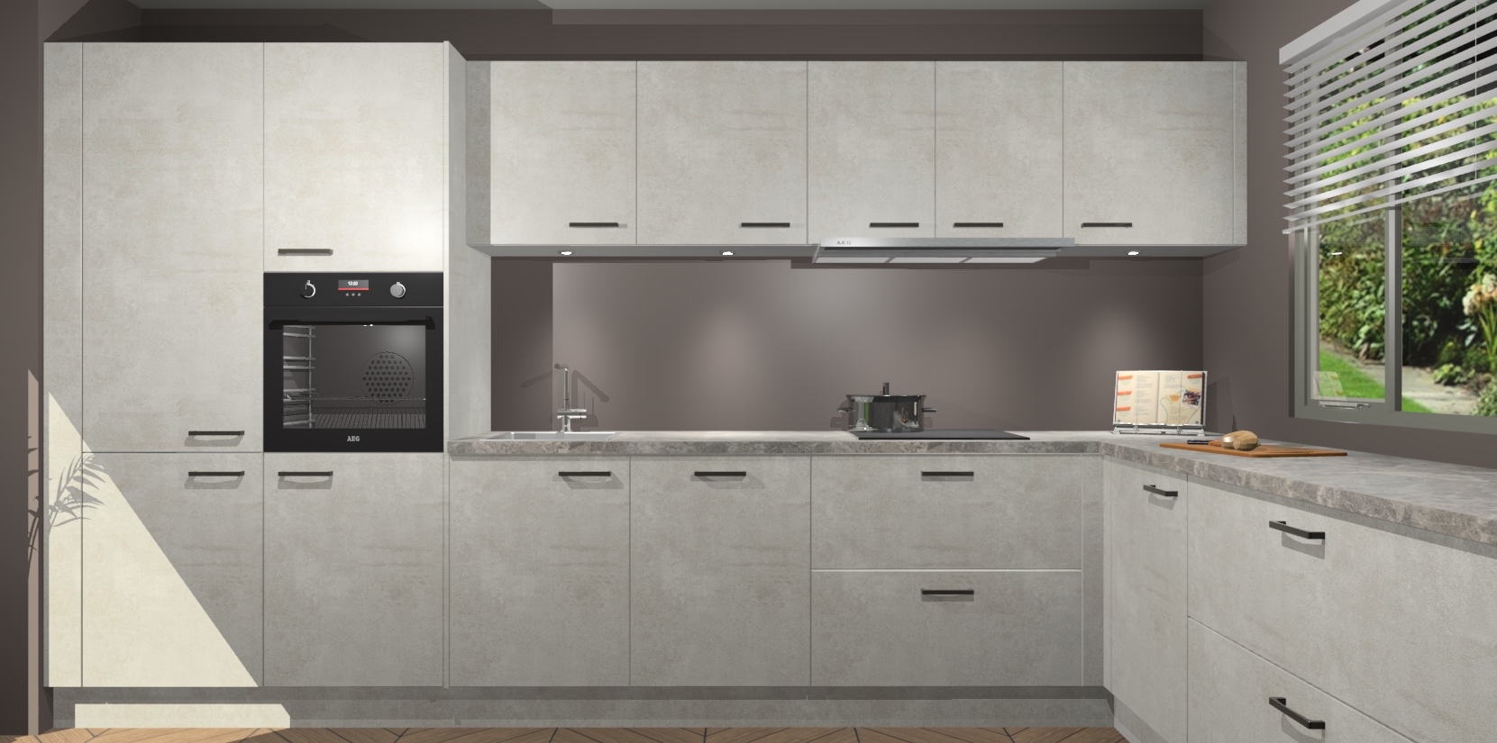 Verwelkom de natuurlijke warmte van de Beton Opal keuken Petten in uw huis. Deze prachtige hoekkeuken met zijn moderne design en warme houten look geeft u meer dan genoeg opbergruimte om uw comfortabel te voelen in uw keuken. Geniet van soft-close deuren die al uw gasten het gevoel zullen geven dat ze zich in een luxueuze ruimte bevinden.