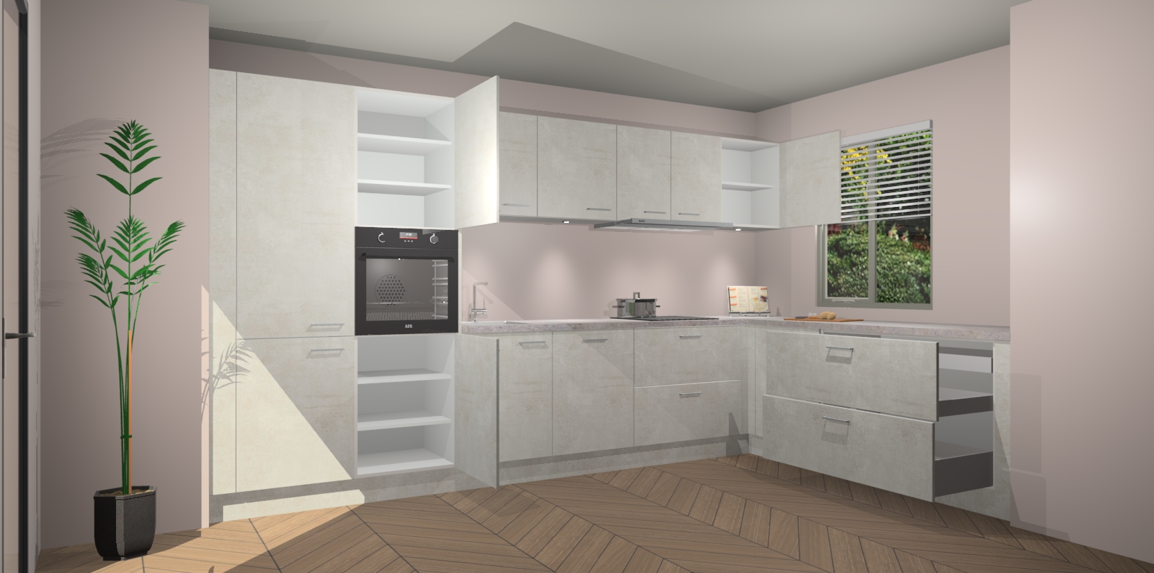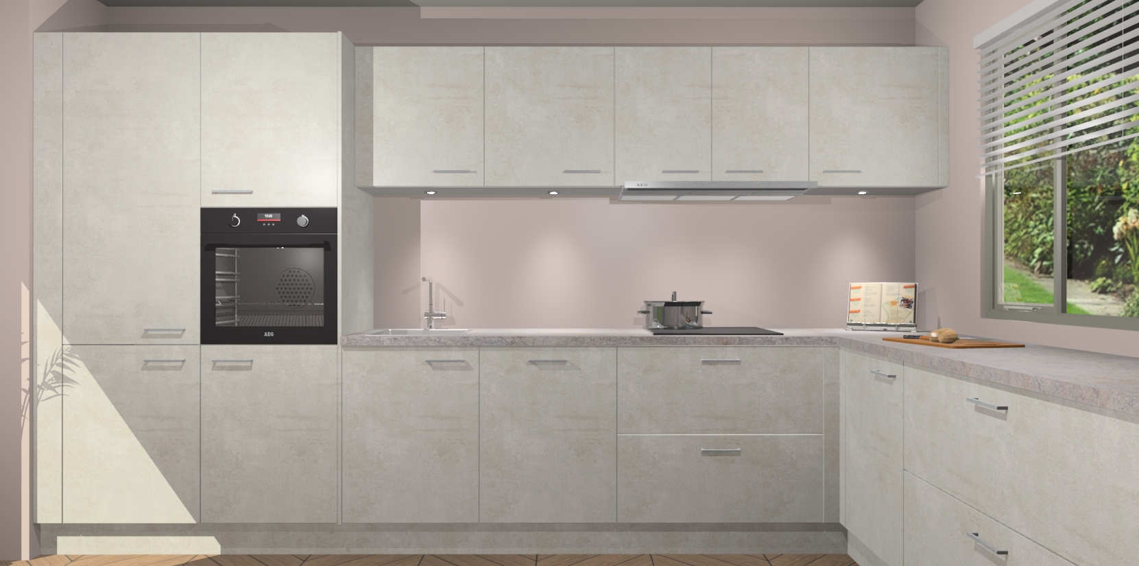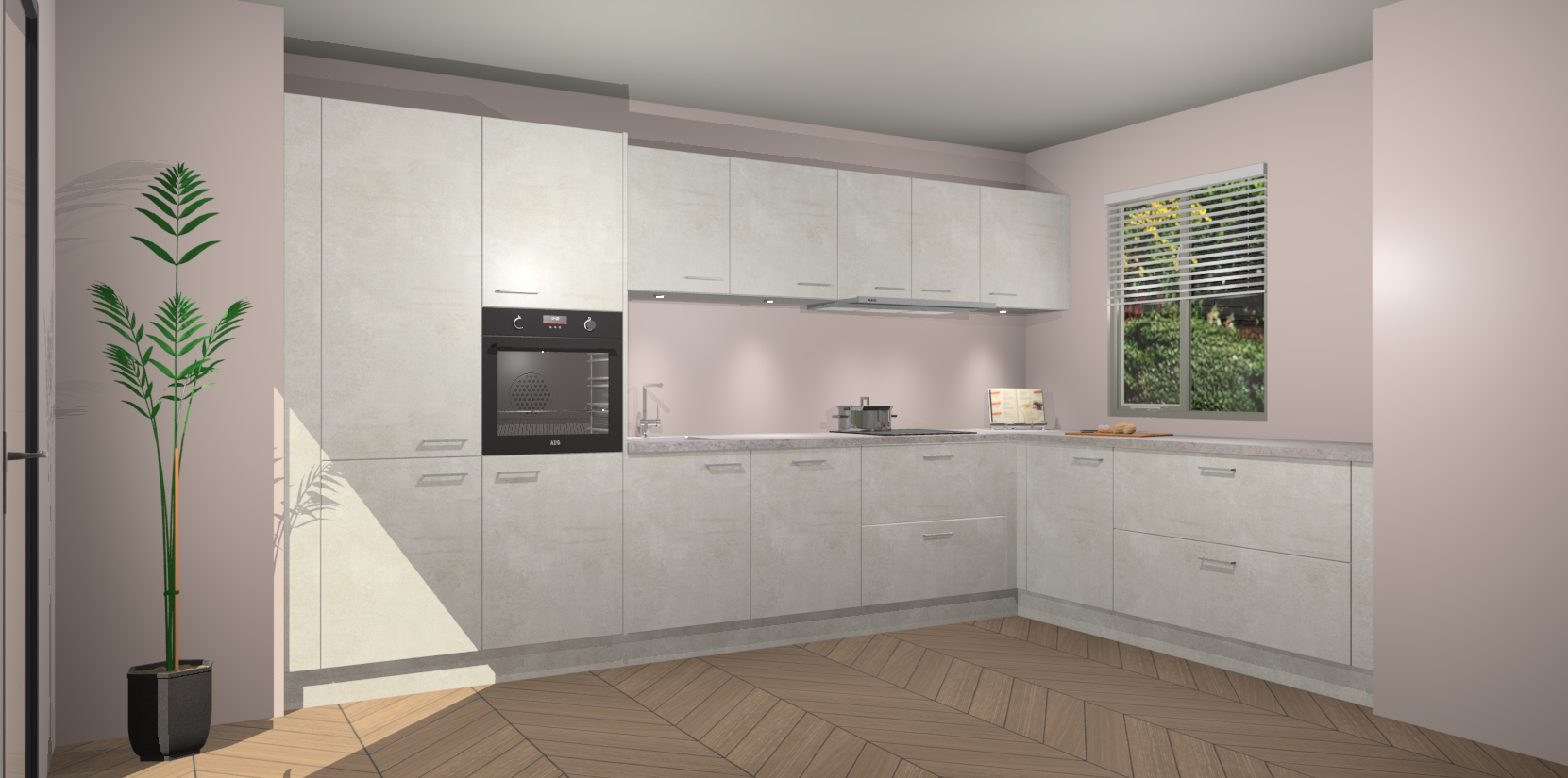 Verwelkom de natuurlijke warmte van de Beton Opal keuken Petten in uw huis. Deze prachtige hoekkeuken met zijn moderne design en warme houten look geeft u meer dan genoeg opbergruimte om uw comfortabel te voelen in uw keuken. Geniet van soft-close deuren die al uw gasten het gevoel zullen geven dat ze zich in een luxueuze ruimte bevinden.
