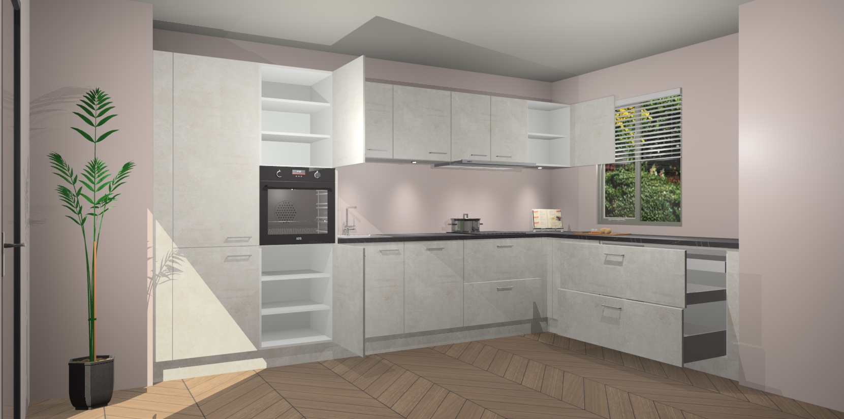 Verwelkom de natuurlijke warmte van de Beton Opal keuken Petten in uw huis. Deze prachtige hoekkeuken met zijn moderne design en warme houten look geeft u meer dan genoeg opbergruimte om uw comfortabel te voelen in uw keuken. Geniet van soft-close deuren die al uw gasten het gevoel zullen geven dat ze zich in een luxueuze ruimte bevinden.