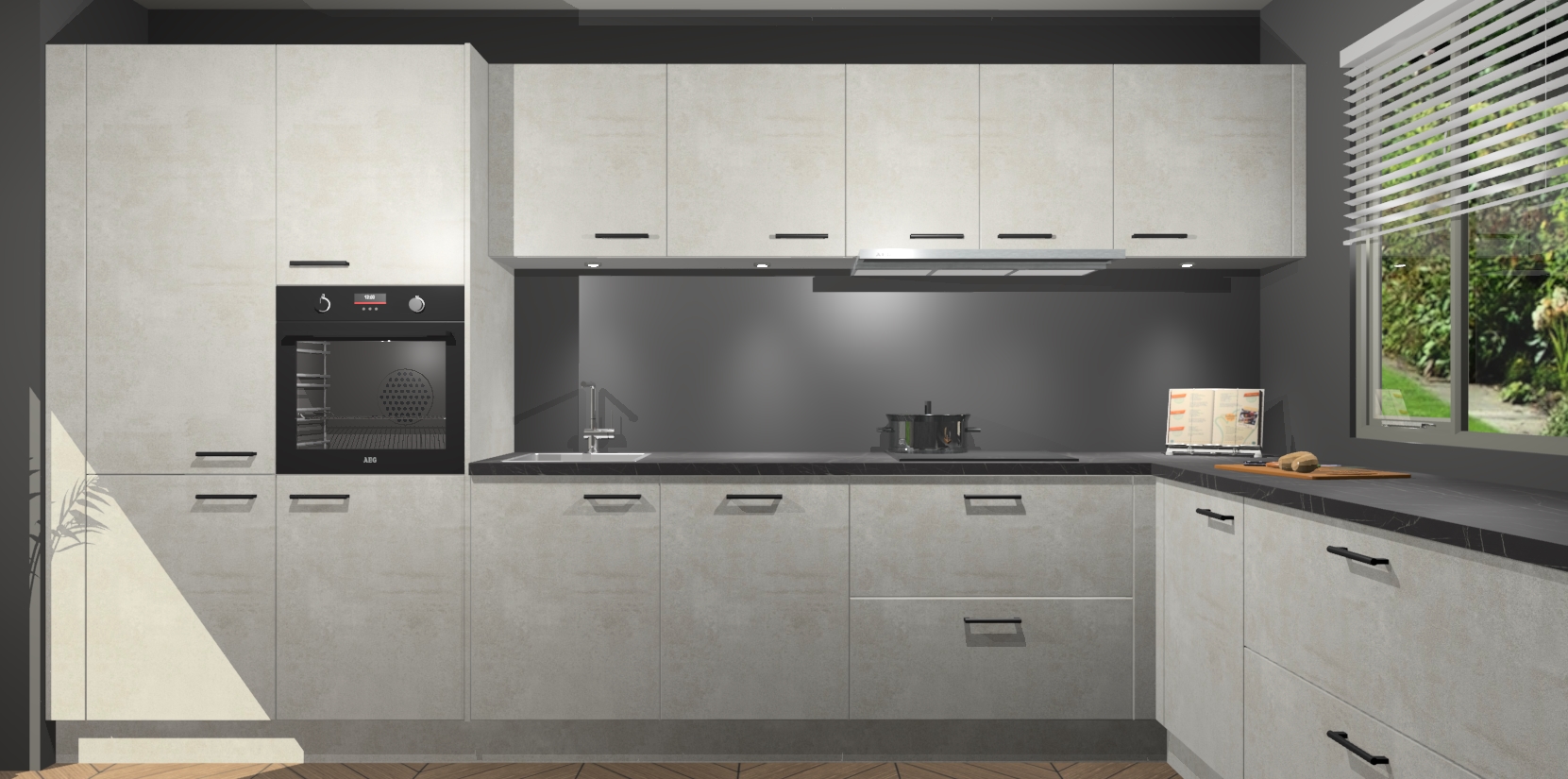 Verwelkom de natuurlijke warmte van de Beton Opal keuken Petten in uw huis. Deze prachtige hoekkeuken met zijn moderne design en warme houten look geeft u meer dan genoeg opbergruimte om uw comfortabel te voelen in uw keuken. Geniet van soft-close deuren die al uw gasten het gevoel zullen geven dat ze zich in een luxueuze ruimte bevinden.