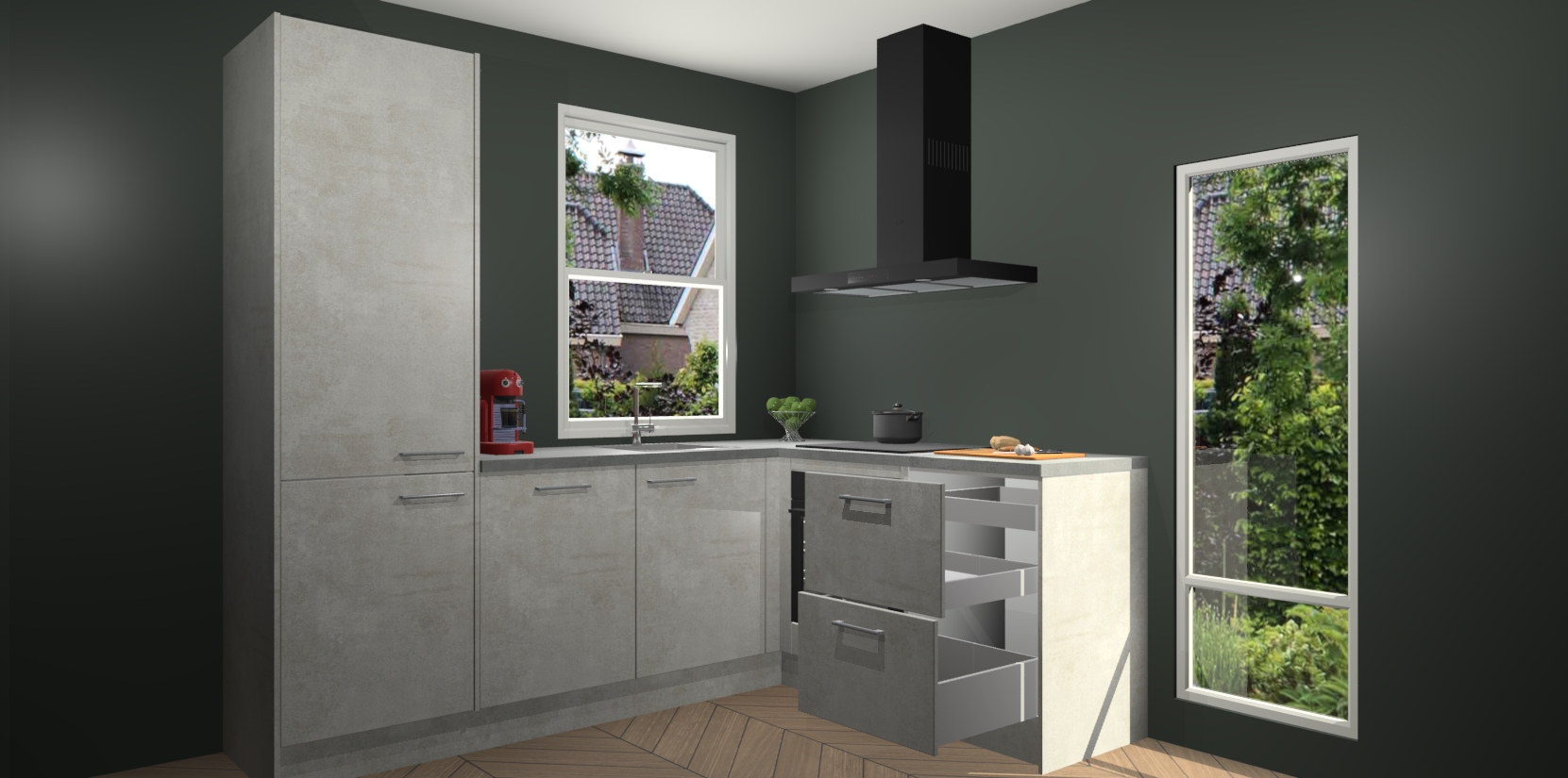 De Beton Opal keuken Phuket heeft alles wat u maar kunt wensen. Niet alleen zijn er softclose deuren, maar ook 5 ingebouwde apparaten: een oven, inductiekookplaat, afzuigkap, vaatwasser en koelkast - waarbij u later gemakkelijk naar het AEG merk, van inductiekookplaat naar kookplaat met geïntegreerde afzuiging of van oven naar combimagnetron kunt upgraden. Dat alles tegen een vast laag tarief! Bovendien geeft de Beton Opal keuken Phuket supersnelle levering van 7 weken. Echt iets voor u als u er niet op wilt wachten om het resultaat te zien in eigen keuken!