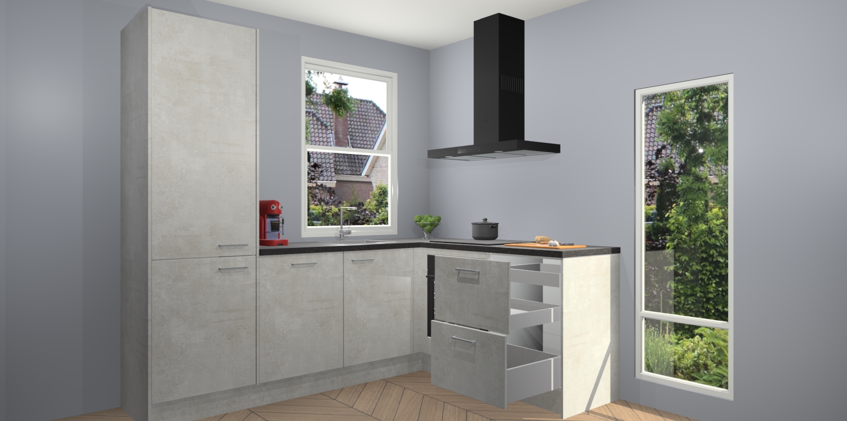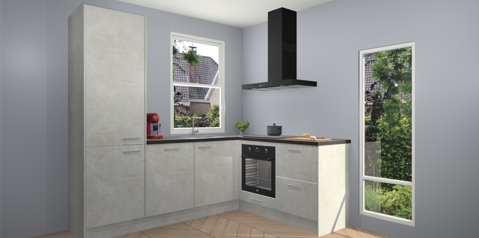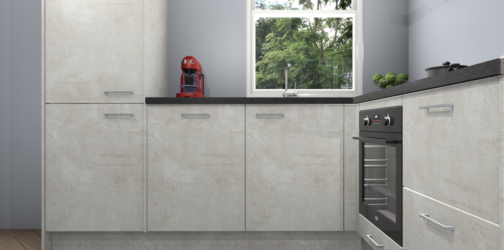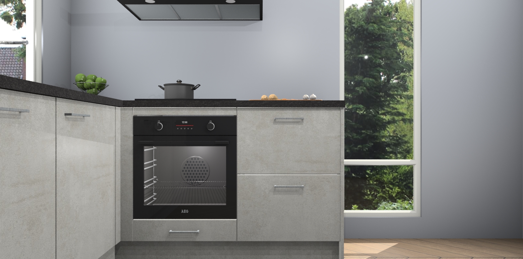De Beton Opal keuken Phuket heeft alles wat u maar kunt wensen. Niet alleen zijn er softclose deuren, maar ook 5 ingebouwde apparaten: een oven, inductiekookplaat, afzuigkap, vaatwasser en koelkast - waarbij u later gemakkelijk naar het AEG merk, van inductiekookplaat naar kookplaat met geïntegreerde afzuiging of van oven naar combimagnetron kunt upgraden. Dat alles tegen een vast laag tarief! Bovendien geeft de Beton Opal keuken Phuket supersnelle levering van 7 weken. Echt iets voor u als u er niet op wilt wachten om het resultaat te zien in eigen keuken!