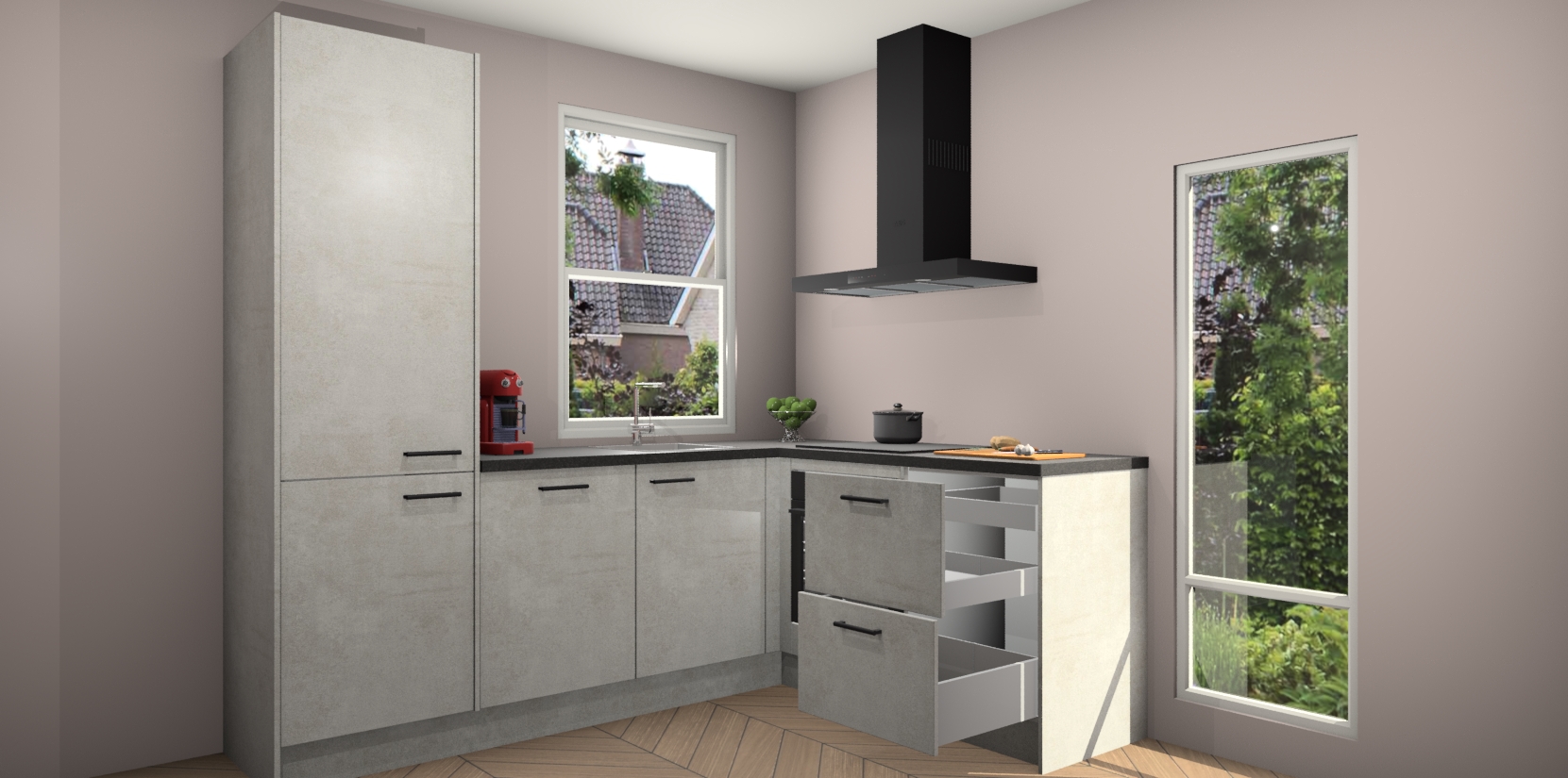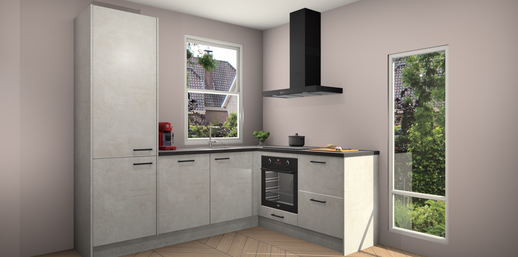 De Beton Opal keuken Phuket heeft alles wat u maar kunt wensen. Niet alleen zijn er softclose deuren, maar ook 5 ingebouwde apparaten: een oven, inductiekookplaat, afzuigkap, vaatwasser en koelkast - waarbij u later gemakkelijk naar het AEG merk, van inductiekookplaat naar kookplaat met geïntegreerde afzuiging of van oven naar combimagnetron kunt upgraden. Dat alles tegen een vast laag tarief! Bovendien geeft de Beton Opal keuken Phuket supersnelle levering van 7 weken. Echt iets voor u als u er niet op wilt wachten om het resultaat te zien in eigen keuken!