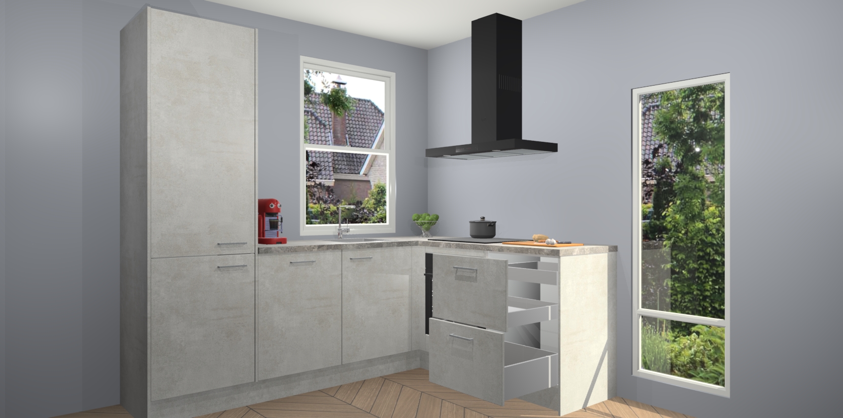 De Beton Opal keuken Phuket heeft alles wat u maar kunt wensen. Niet alleen zijn er softclose deuren, maar ook 5 ingebouwde apparaten: een oven, inductiekookplaat, afzuigkap, vaatwasser en koelkast - waarbij u later gemakkelijk naar het AEG merk, van inductiekookplaat naar kookplaat met geïntegreerde afzuiging of van oven naar combimagnetron kunt upgraden. Dat alles tegen een vast laag tarief! Bovendien geeft de Beton Opal keuken Phuket supersnelle levering van 7 weken. Echt iets voor u als u er niet op wilt wachten om het resultaat te zien in eigen keuken!