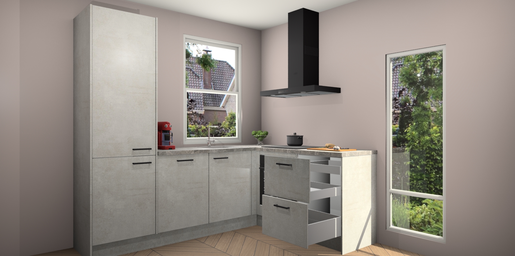 De Beton Opal keuken Phuket heeft alles wat u maar kunt wensen. Niet alleen zijn er softclose deuren, maar ook 5 ingebouwde apparaten: een oven, inductiekookplaat, afzuigkap, vaatwasser en koelkast - waarbij u later gemakkelijk naar het AEG merk, van inductiekookplaat naar kookplaat met geïntegreerde afzuiging of van oven naar combimagnetron kunt upgraden. Dat alles tegen een vast laag tarief! Bovendien geeft de Beton Opal keuken Phuket supersnelle levering van 7 weken. Echt iets voor u als u er niet op wilt wachten om het resultaat te zien in eigen keuken!