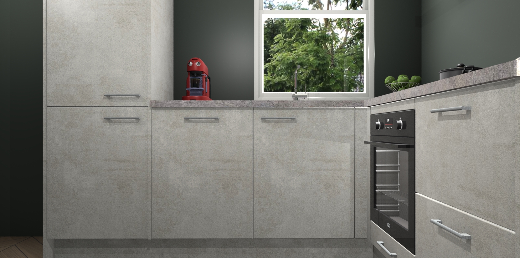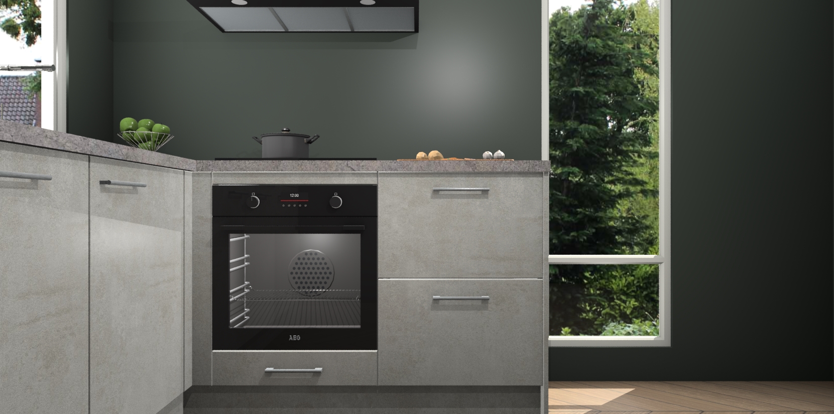 De Beton Opal keuken Phuket heeft alles wat u maar kunt wensen. Niet alleen zijn er softclose deuren, maar ook 5 ingebouwde apparaten: een oven, inductiekookplaat, afzuigkap, vaatwasser en koelkast - waarbij u later gemakkelijk naar het AEG merk, van inductiekookplaat naar kookplaat met geïntegreerde afzuiging of van oven naar combimagnetron kunt upgraden. Dat alles tegen een vast laag tarief! Bovendien geeft de Beton Opal keuken Phuket supersnelle levering van 7 weken. Echt iets voor u als u er niet op wilt wachten om het resultaat te zien in eigen keuken!